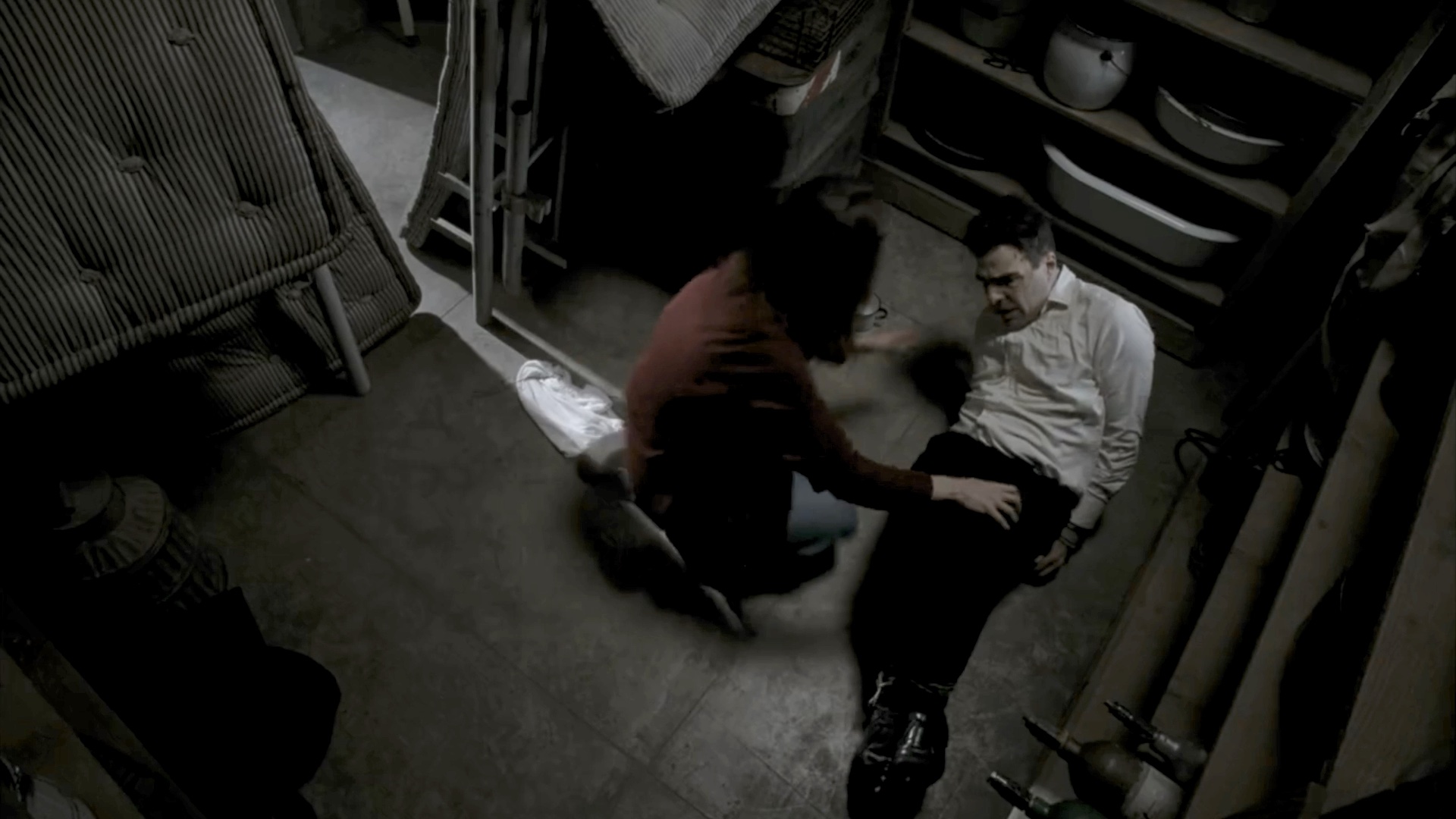 Lana secretly records the confession of a hogtied Oliver Thredson.