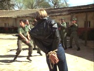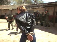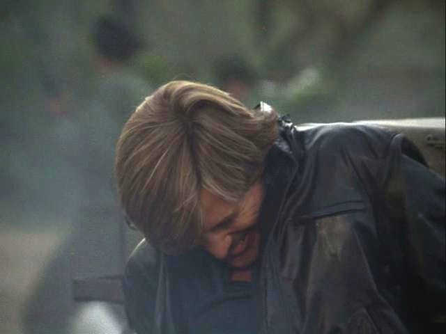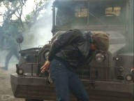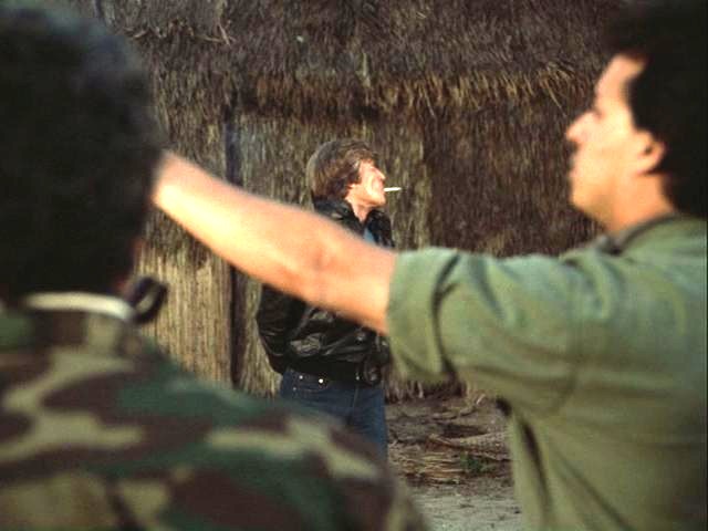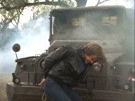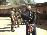 Facing a firing squad, Face attempts to escape by blowing up some gasoline drums with his cigarette. When he fails, his colleagues target the drums and blow 'em up real good.