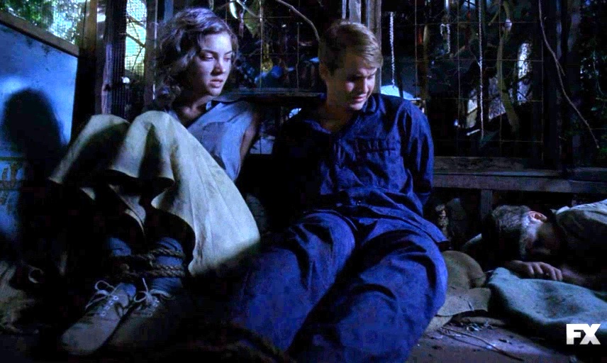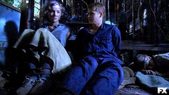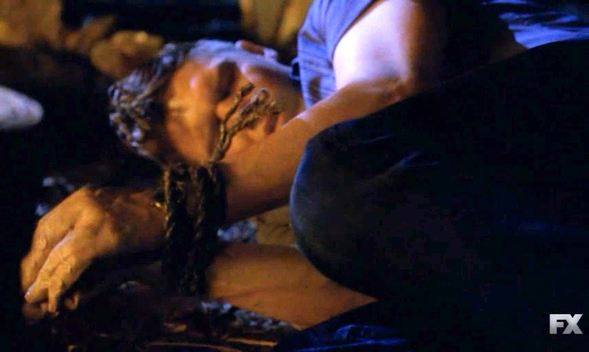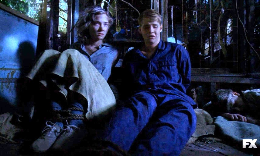 Mike and Bonnie are tied up inside Twisty's van; Jimmy is knocked out and tied up.