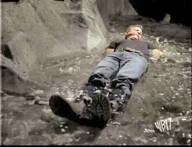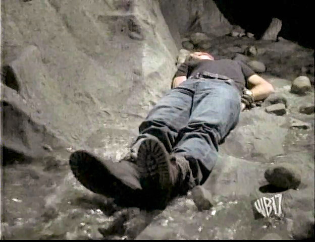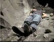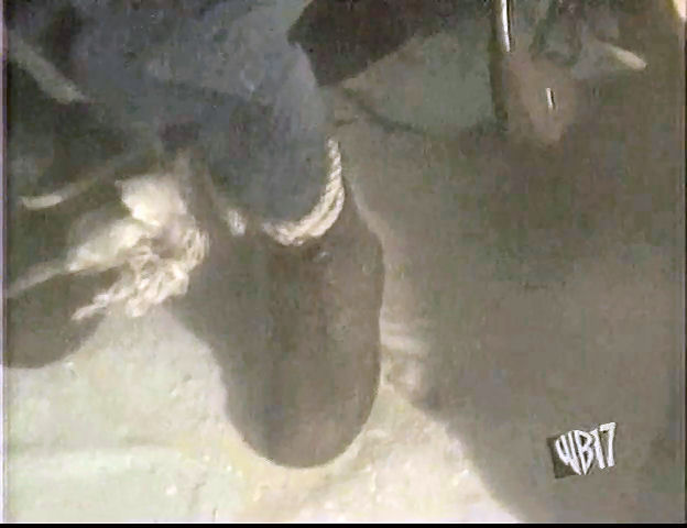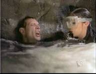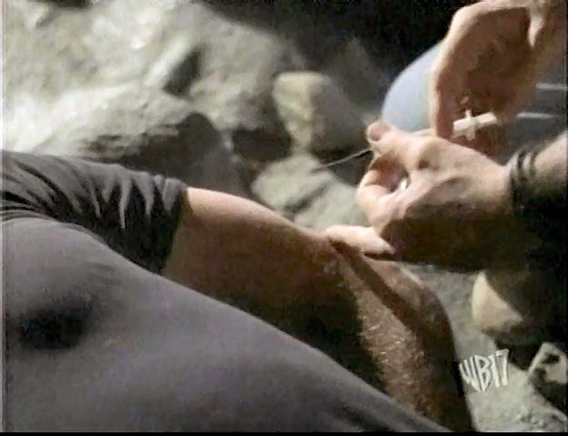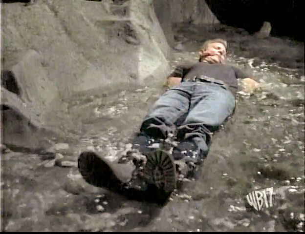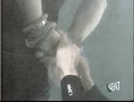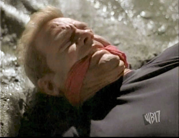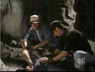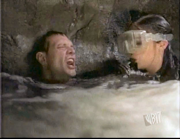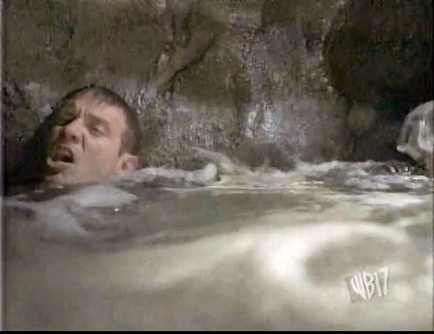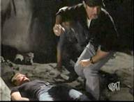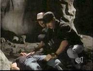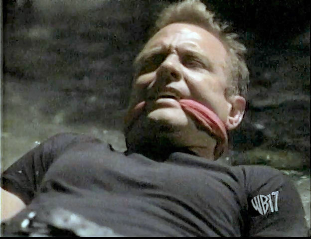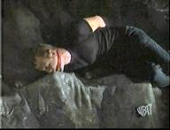 Judson is tied and gagged by two thugs, drugged, and stashed in a cave with the tide coming in.