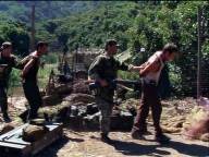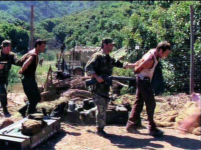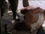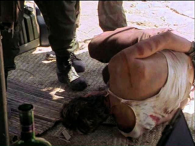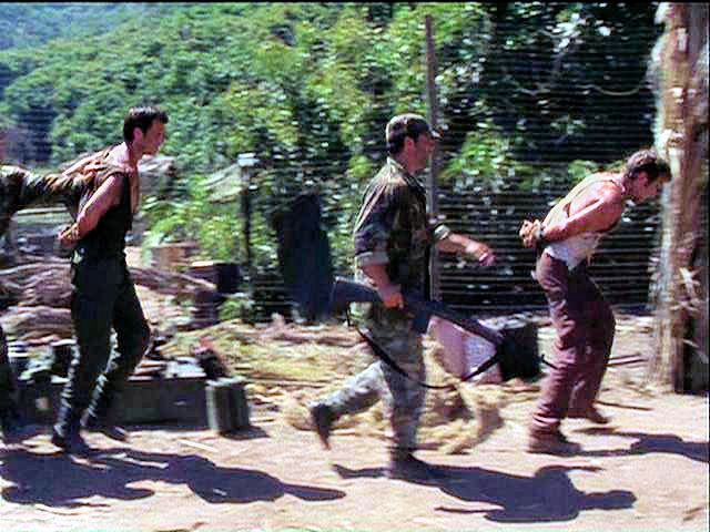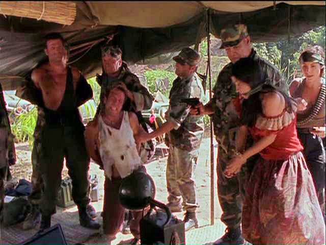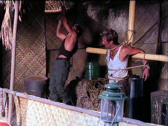 Rio and Wiley have been captured by revolutionaries, who keep them tied up in a shack before putting them before a firing squad at dawn.