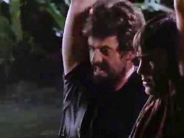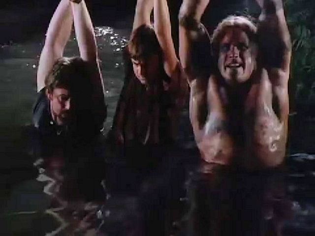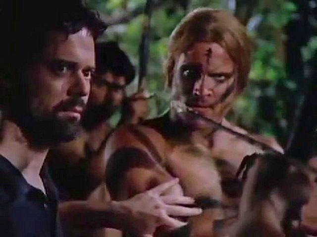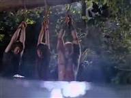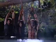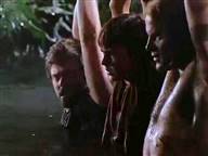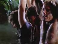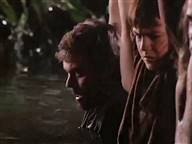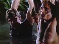 Falconer John reluctantly leads Dr. Kennedy to the aid of the Spider people, who tie them up in the water with a crocodile.