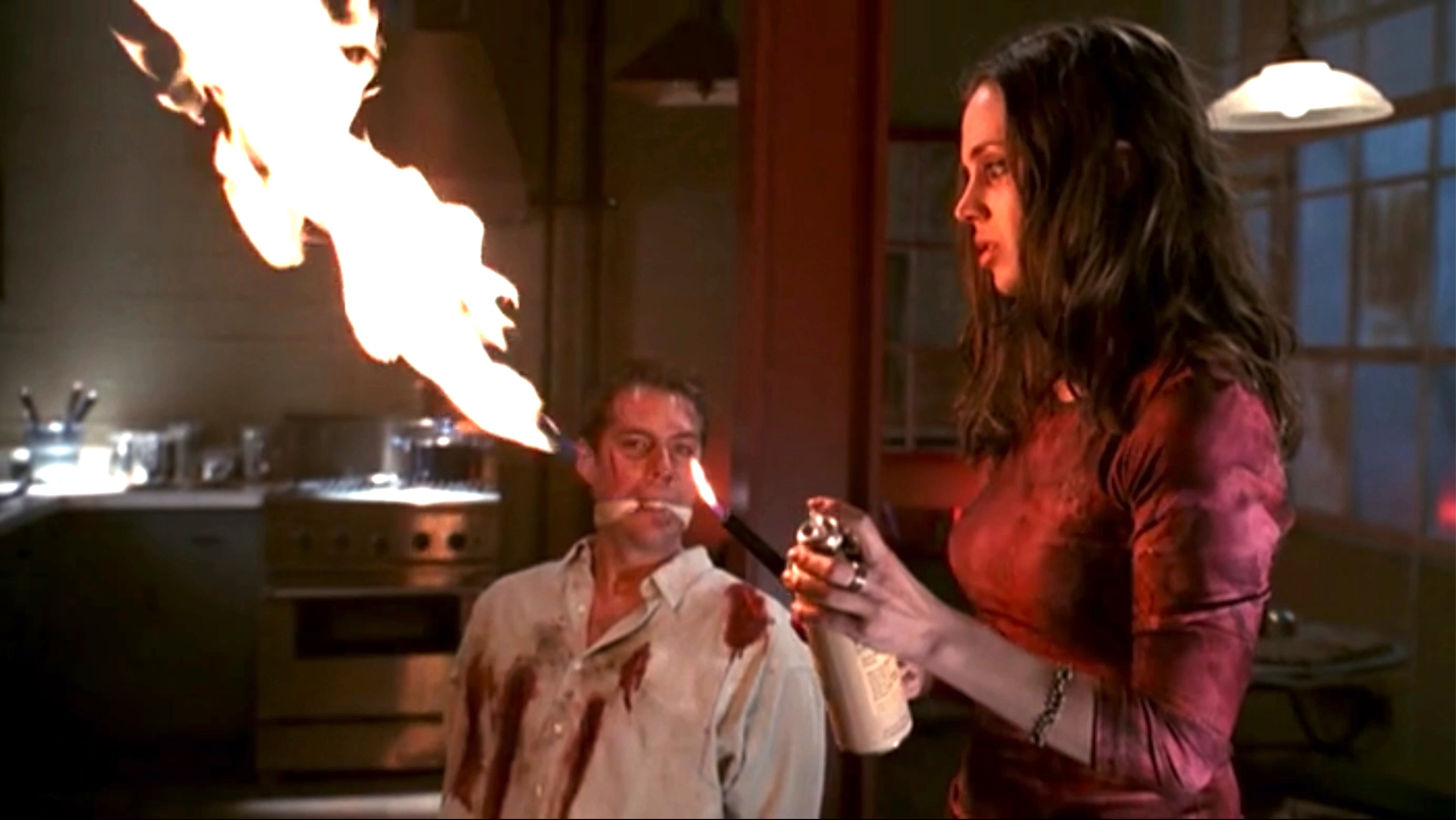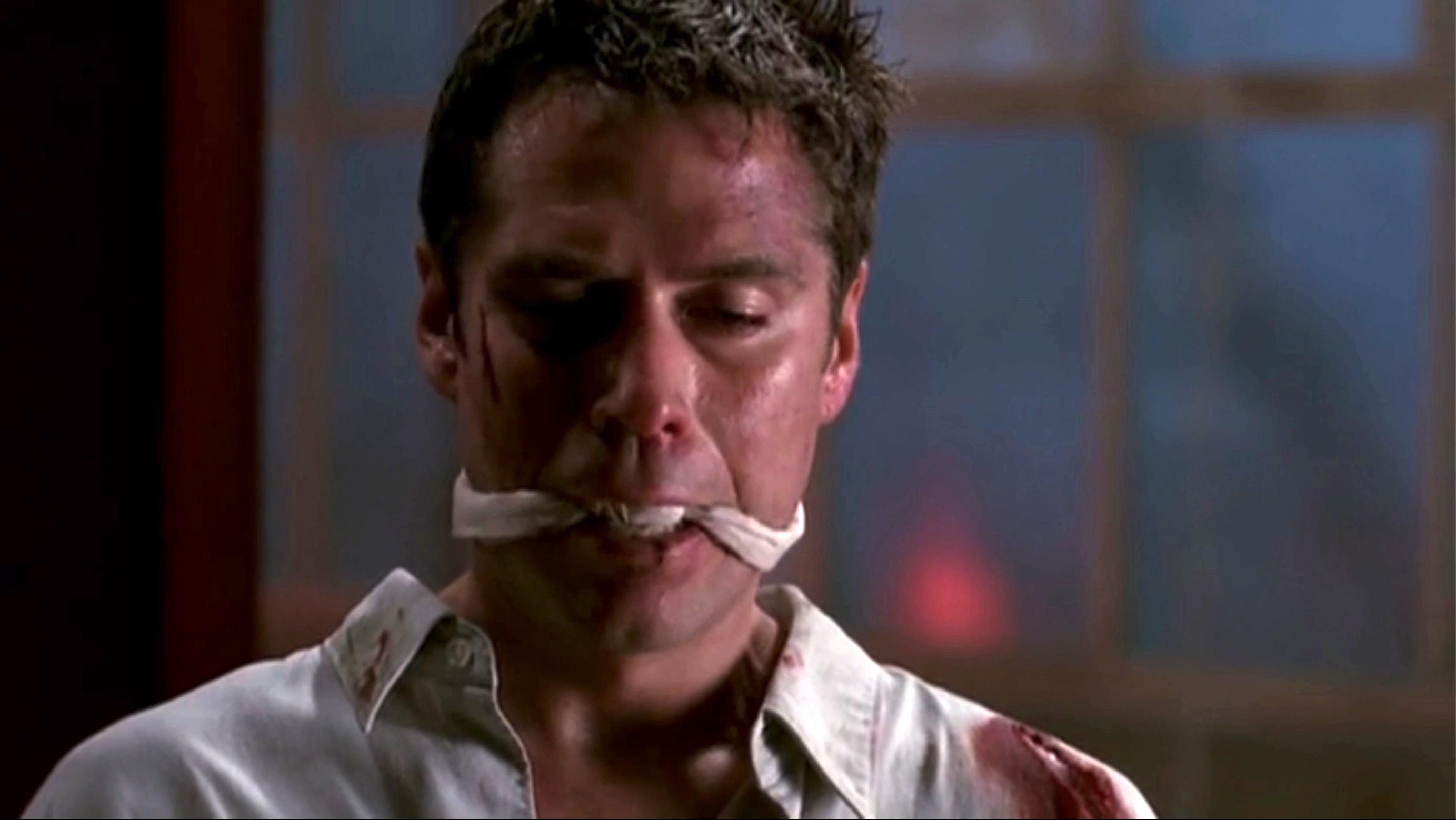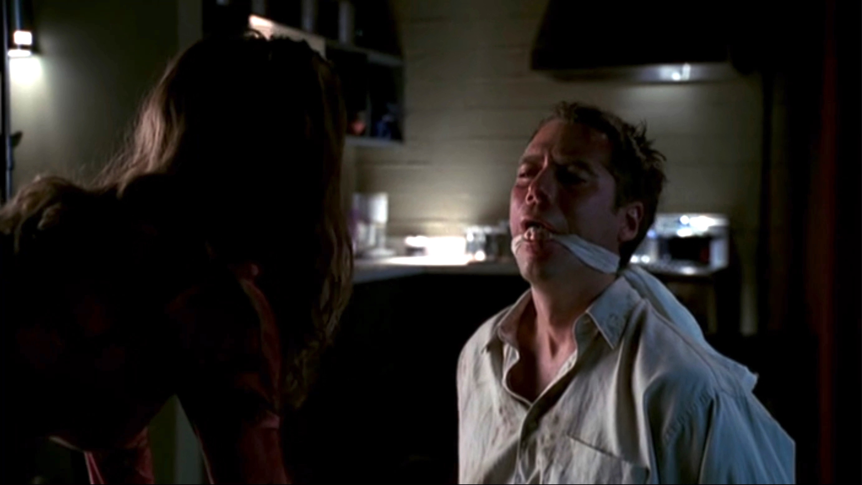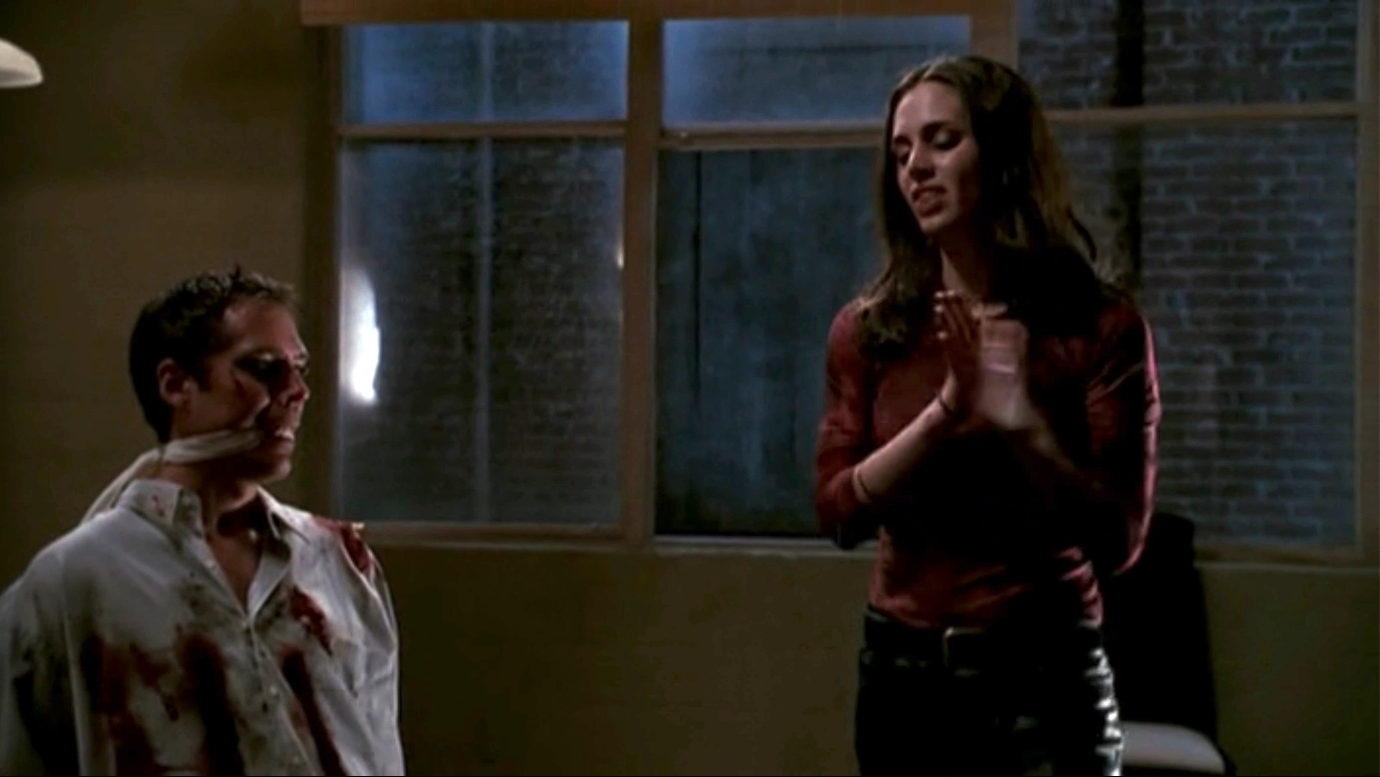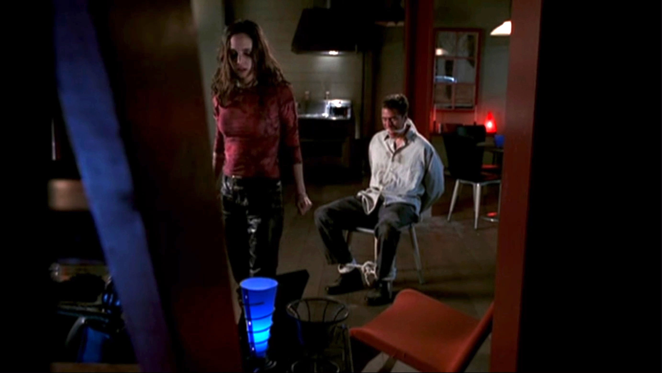 Faith tortures Wesley in an attempt to draw out Angel.
