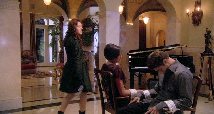 A woman finds her brother tied to a chair as part of an elaborate prank.