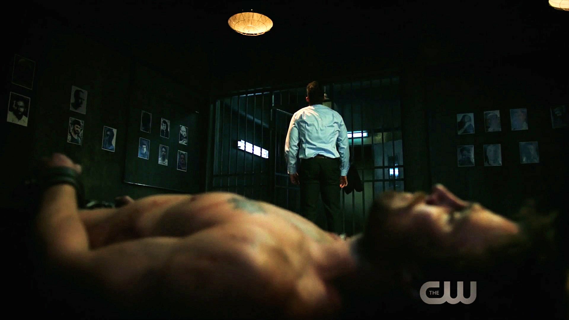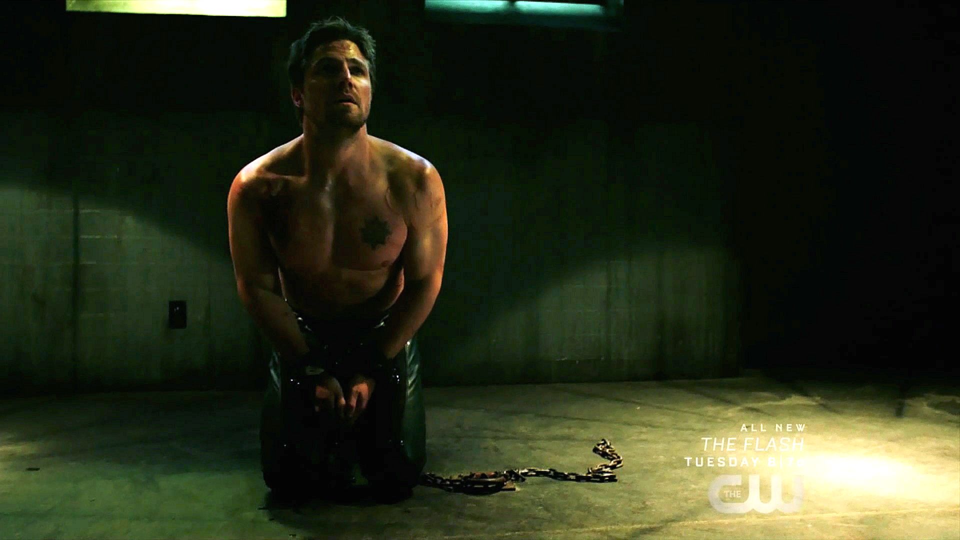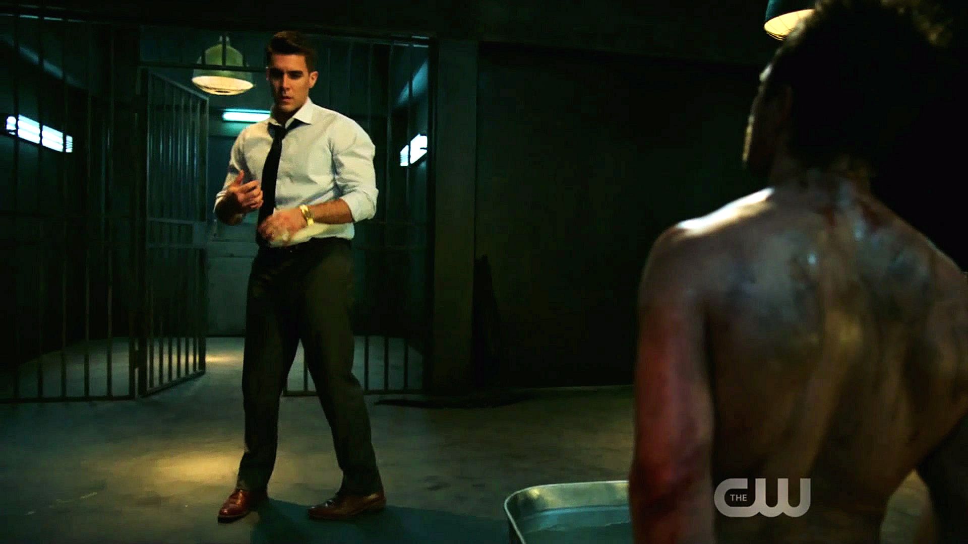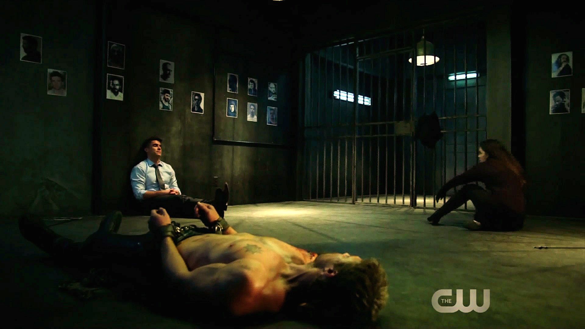 Oliver is tortured by Chase and tortures Gregor in a flashback.