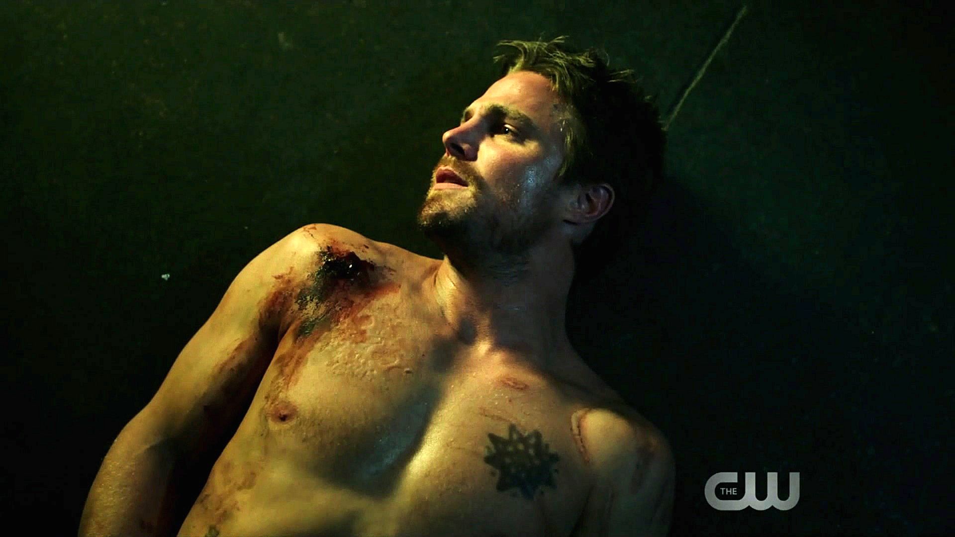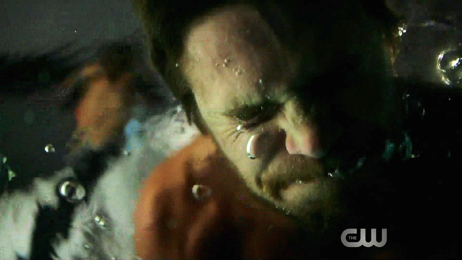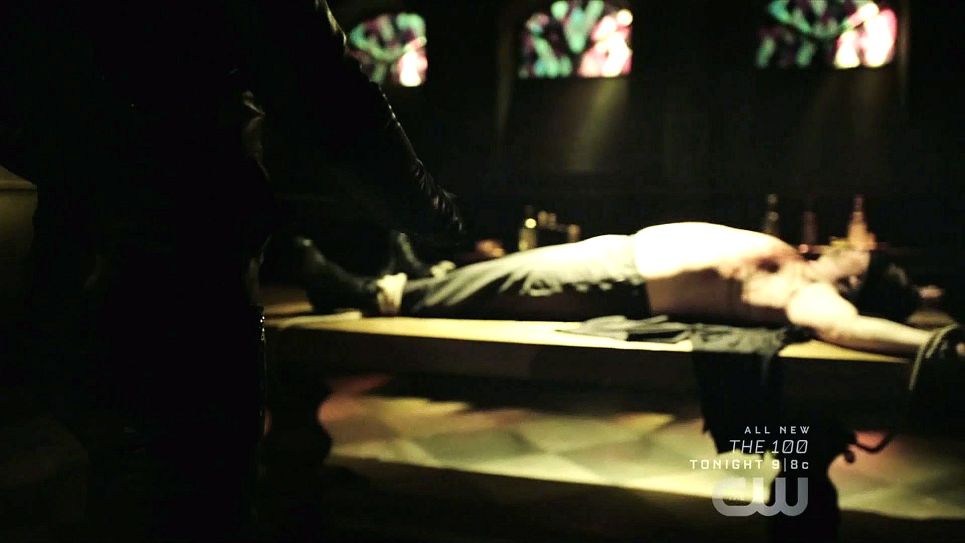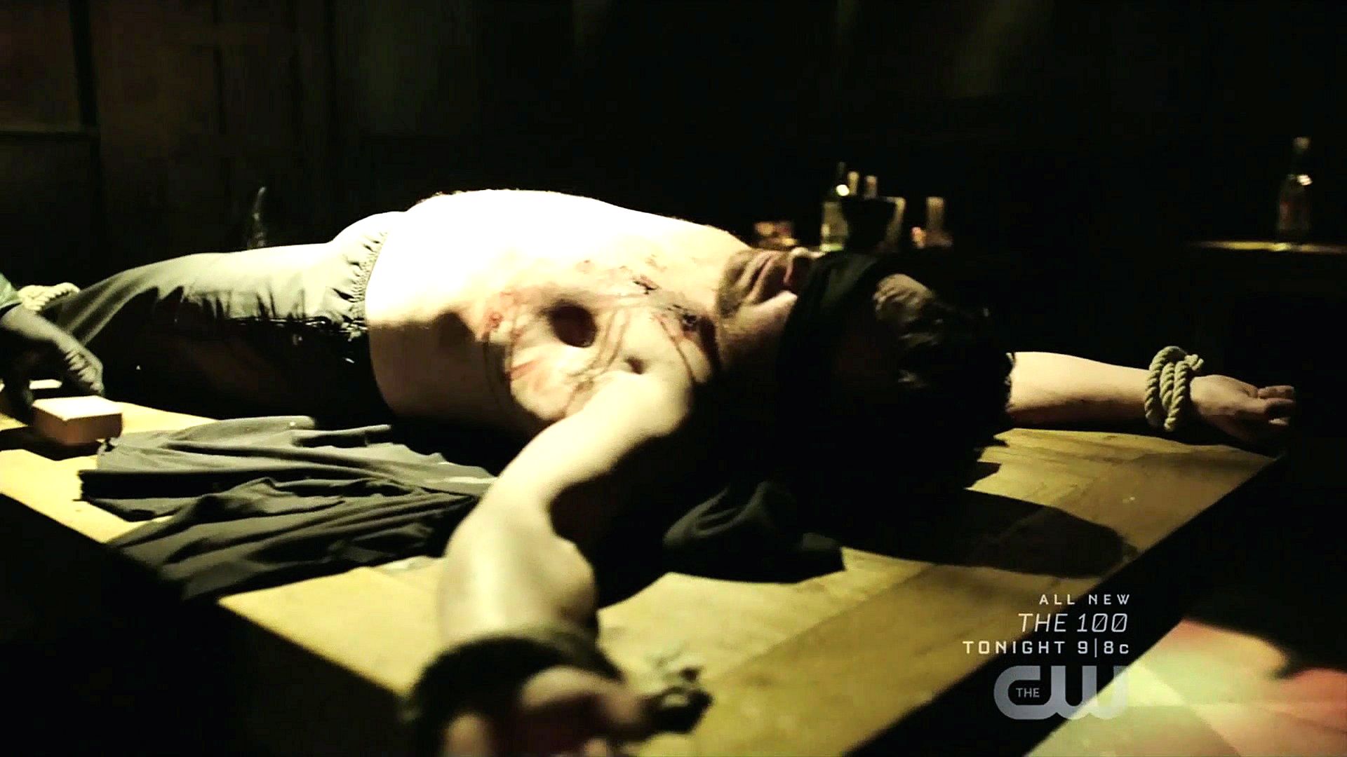 Oliver is tortured by Chase and tortures Gregor in a flashback.