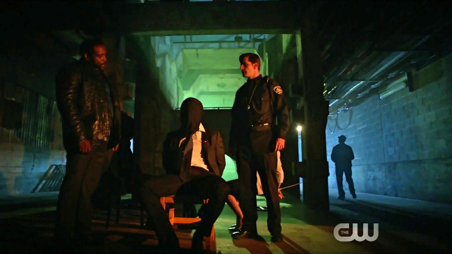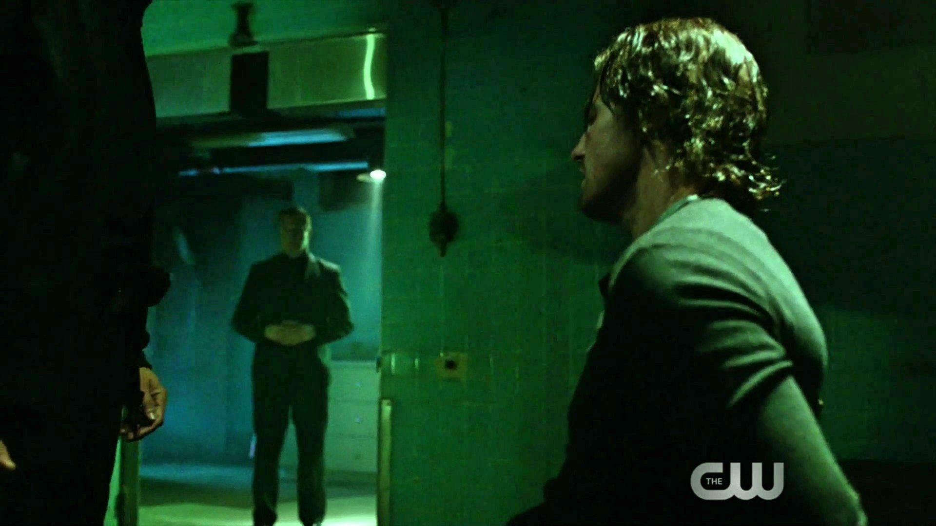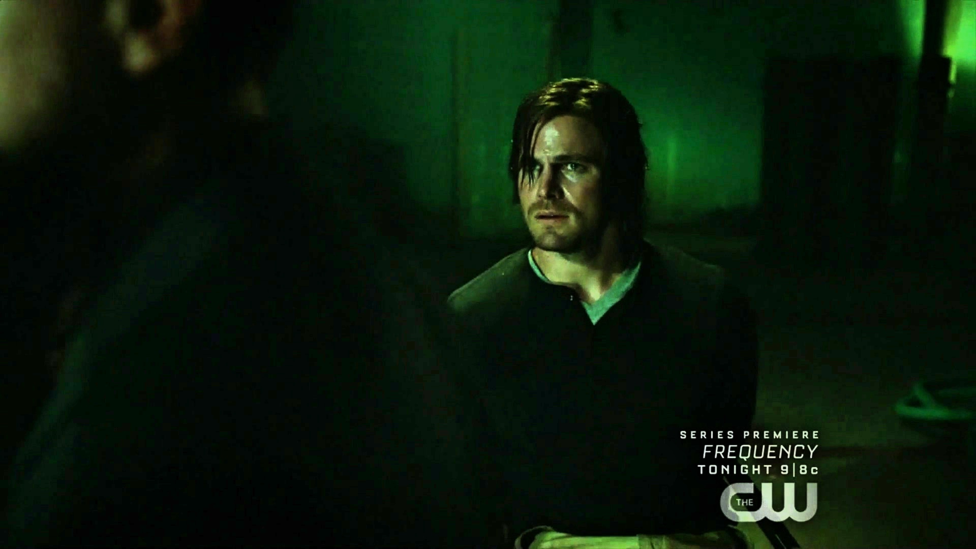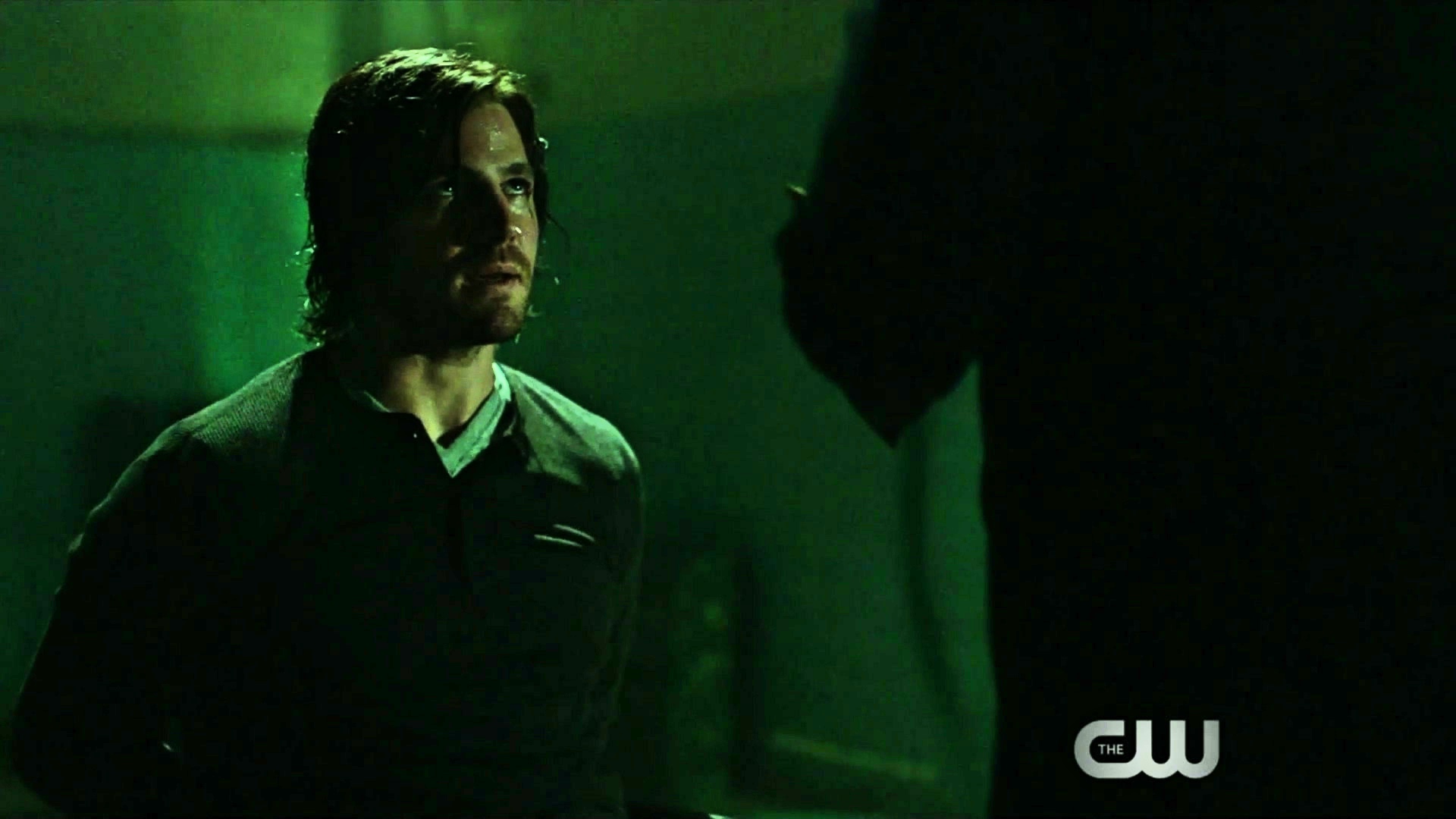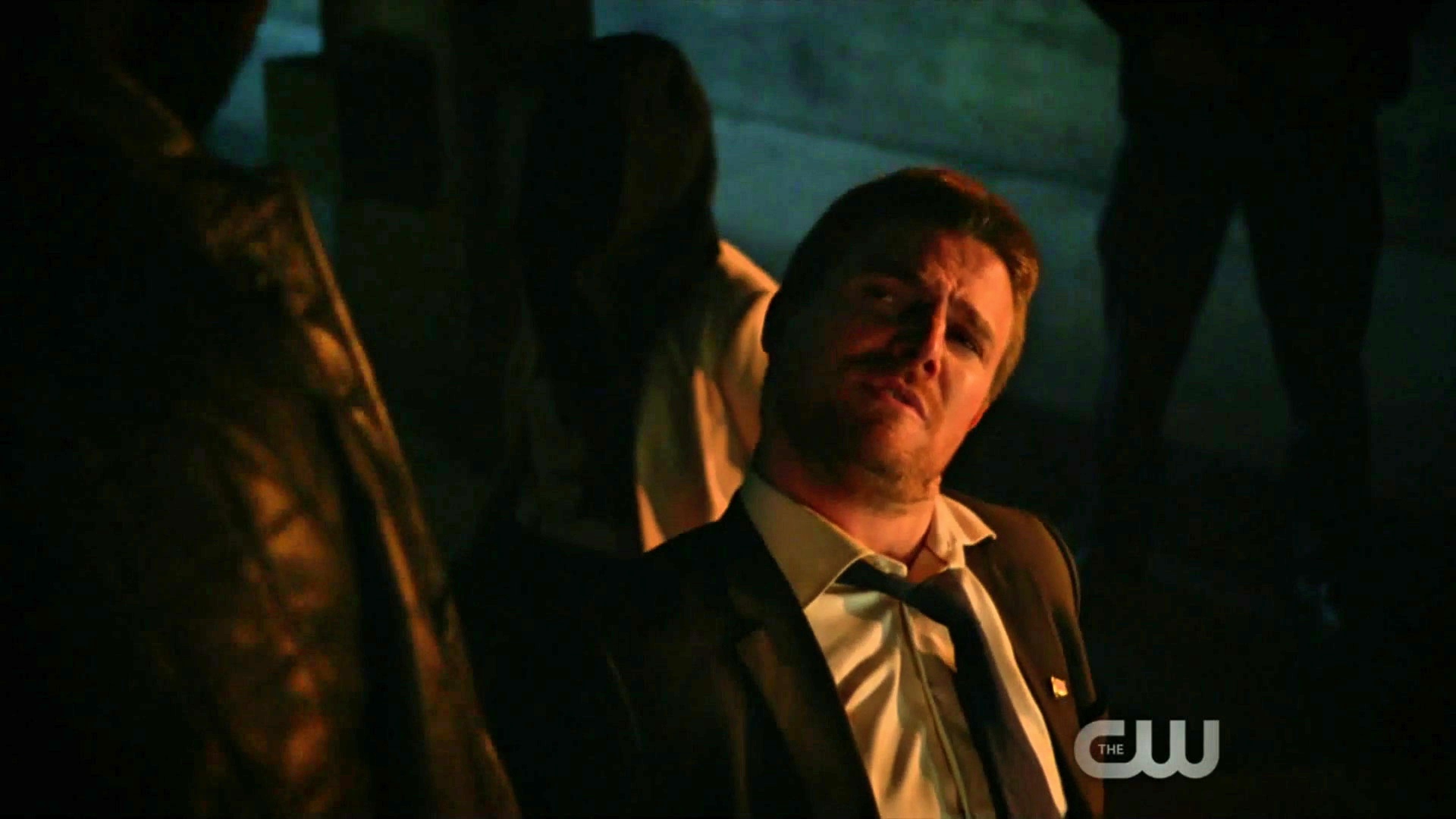 Oliver's held hostage by a Russian thug in a flashback. In the present, he's abducted by corrupt police while a villain takes hostages.