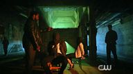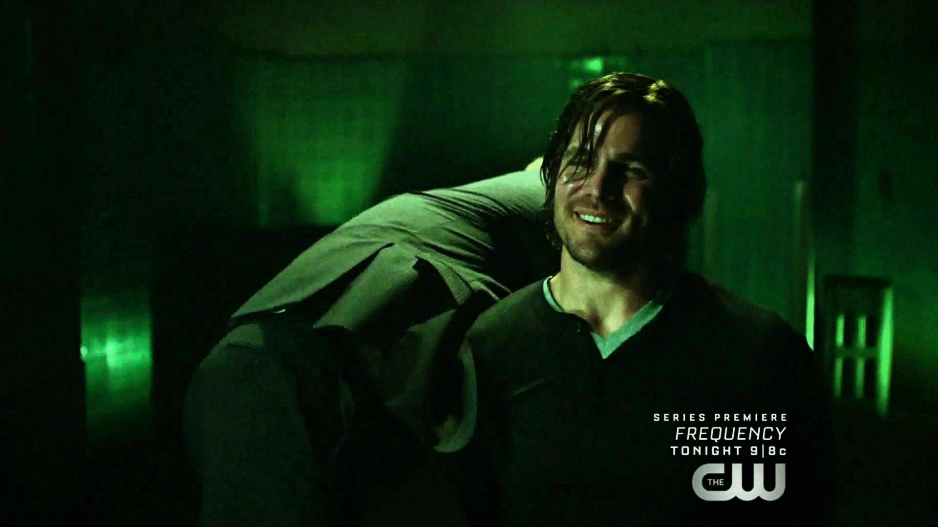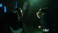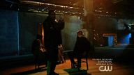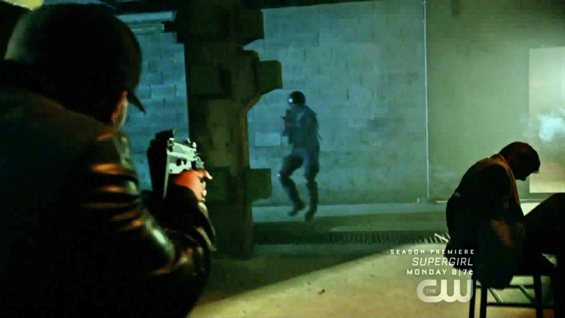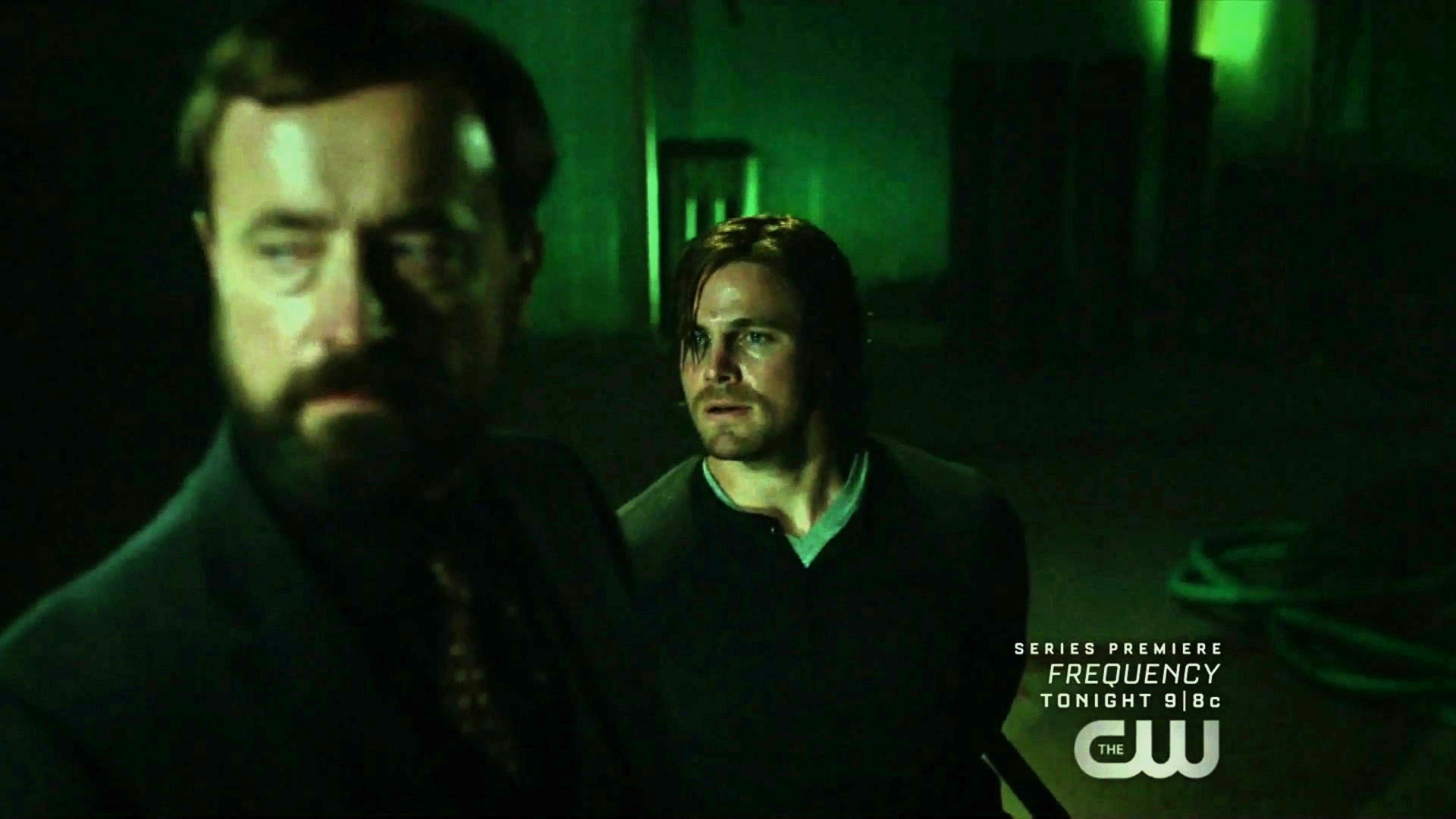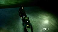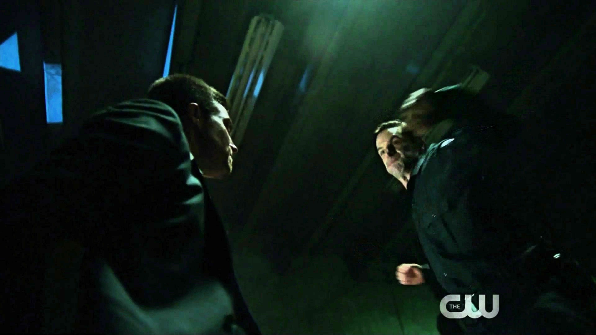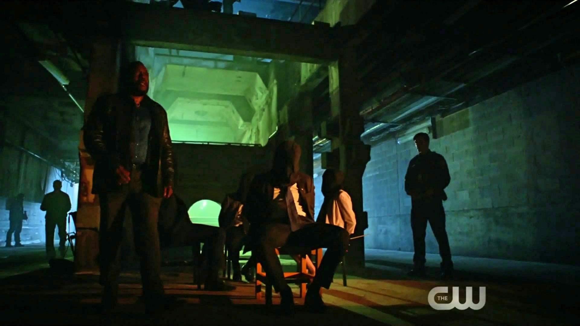 Oliver's held hostage by a Russian thug in a flashback. In the present, he's abducted by corrupt police while a villain takes hostages.