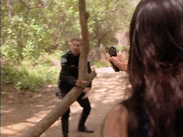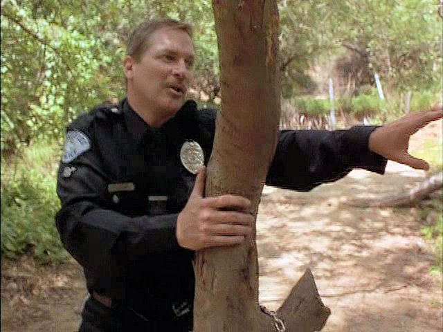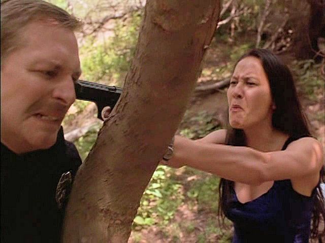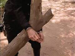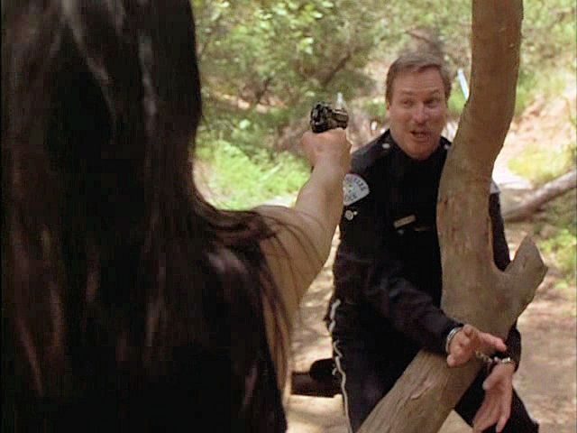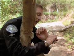 A young woman gets the drop on an obnoxious police officer and handcuffs him to a tree where he's taunted by a homeless man.