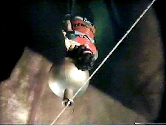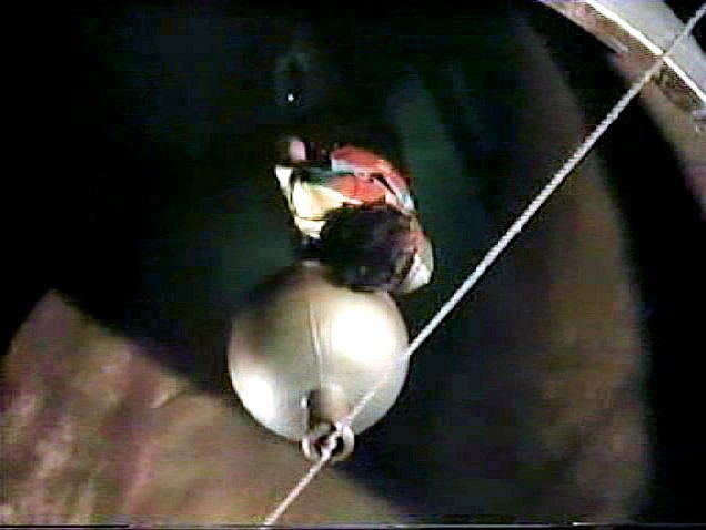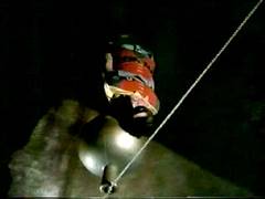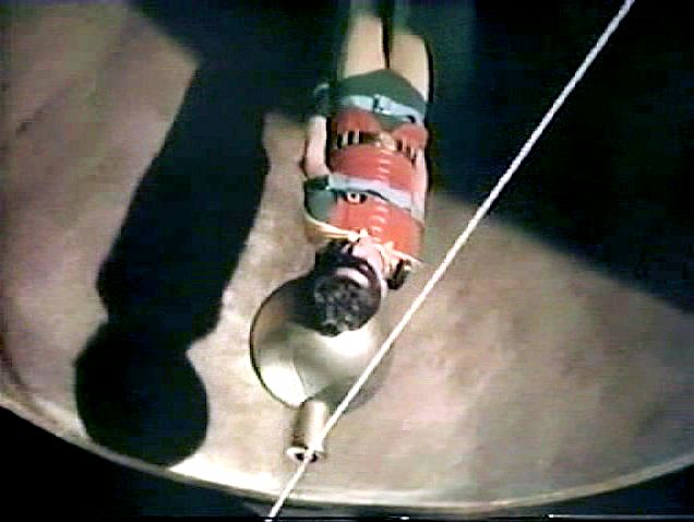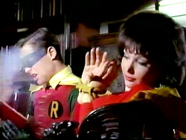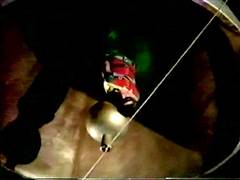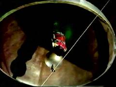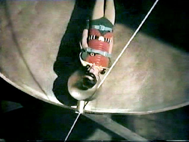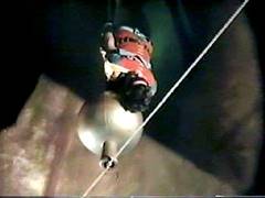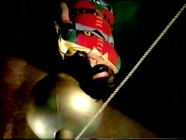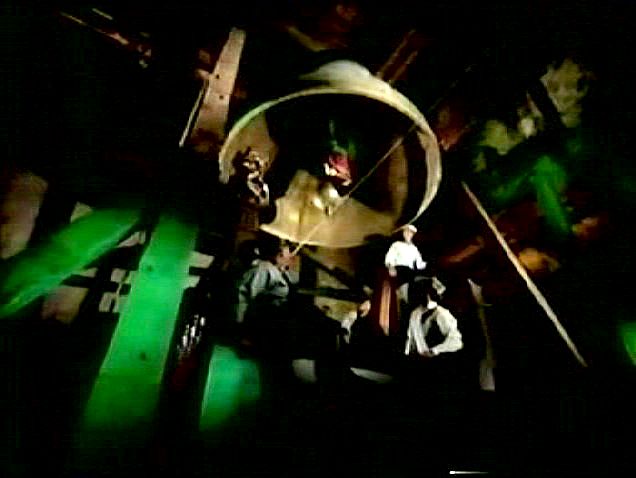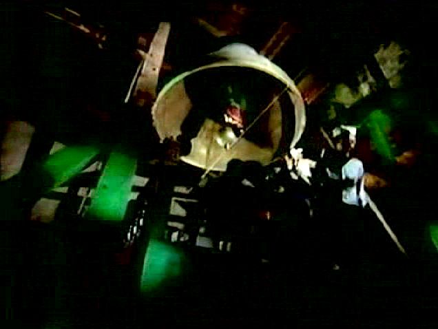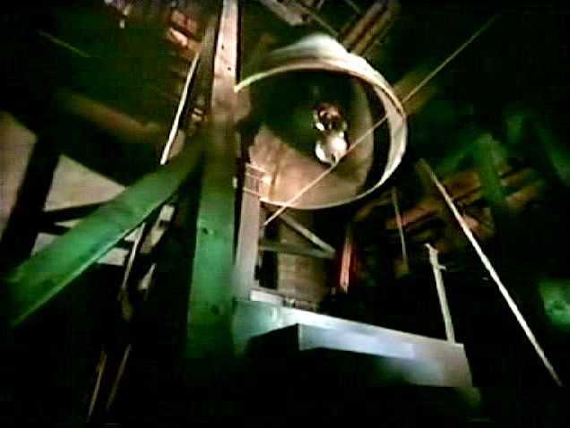 The Bookworm straps Robin to the clapper of a huge bell in a clock tower.