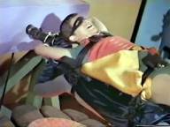 The Minstrel has the Dynamic Duo tied to a giant barbecue spit, where he plans to roast them.