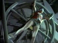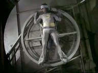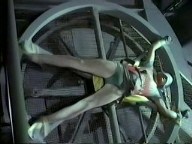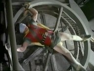 The Riddler straps the Duo to a huge generator, intending to spin the daylights out of them .