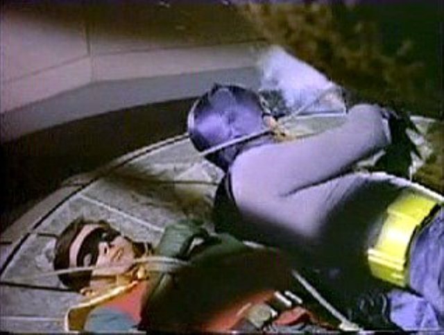 The Duo are tied up under a huge meteorite rigged to fall at dawn.