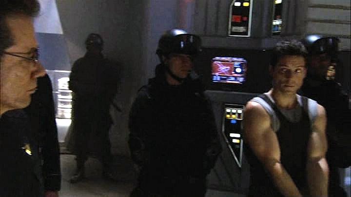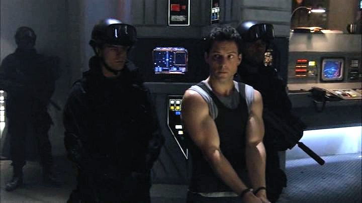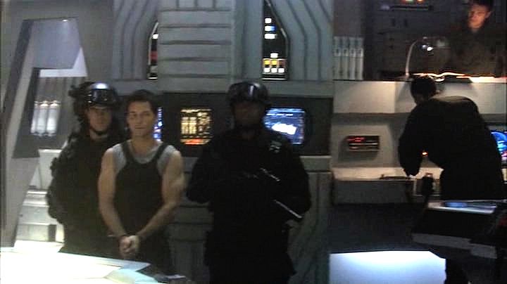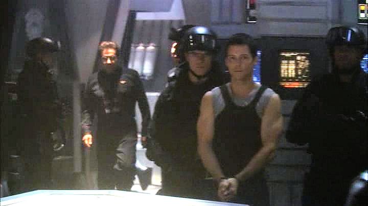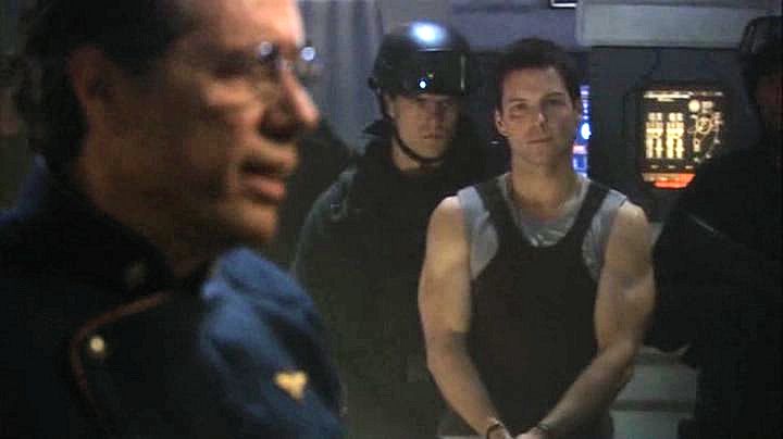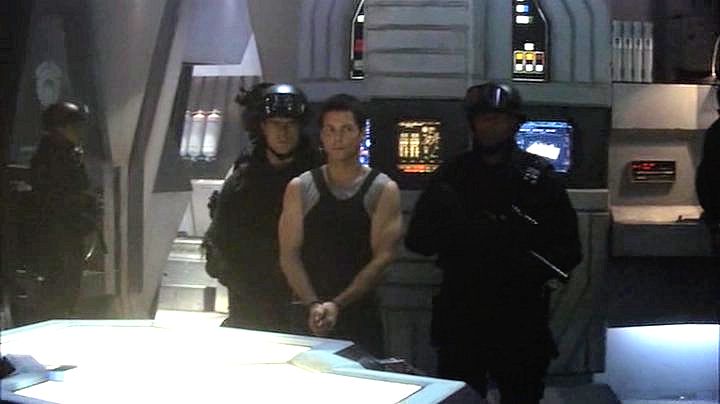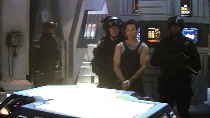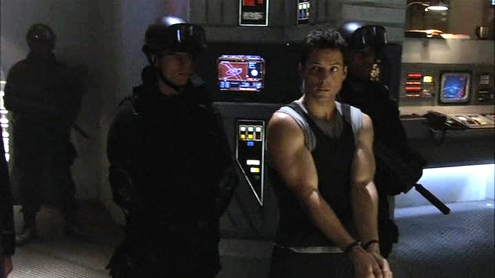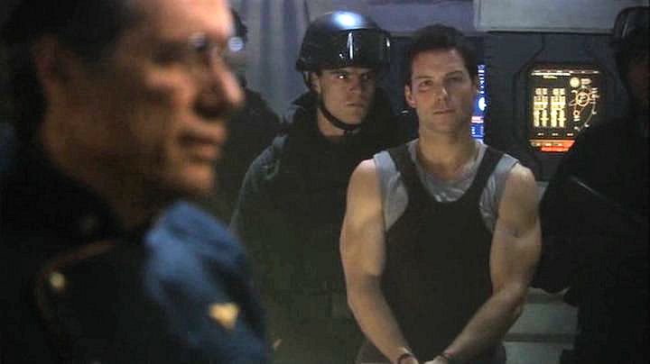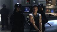 Lee Adama is arrested after a military coup, and ends up handcuffed while watching the attempted assassination of his father.