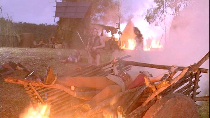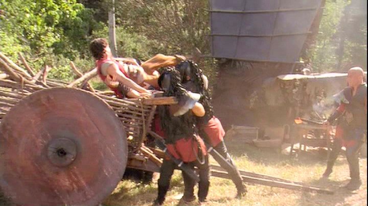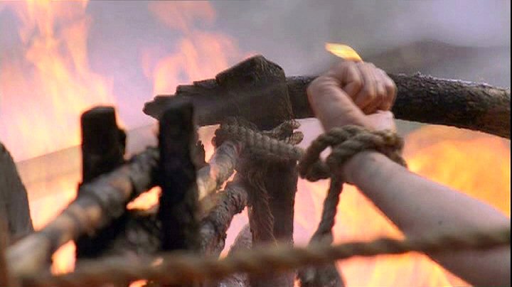 Tao is tied to a burning wagon by Zad's men, but is of course rescued by the BeastMaster just in time.