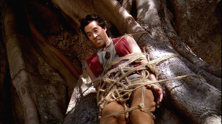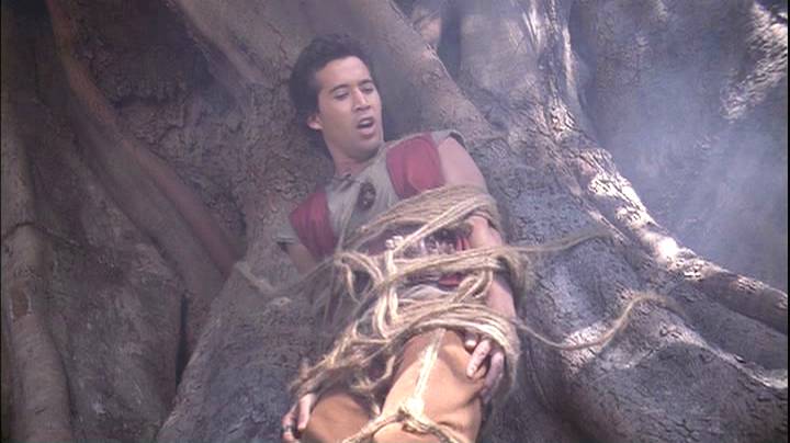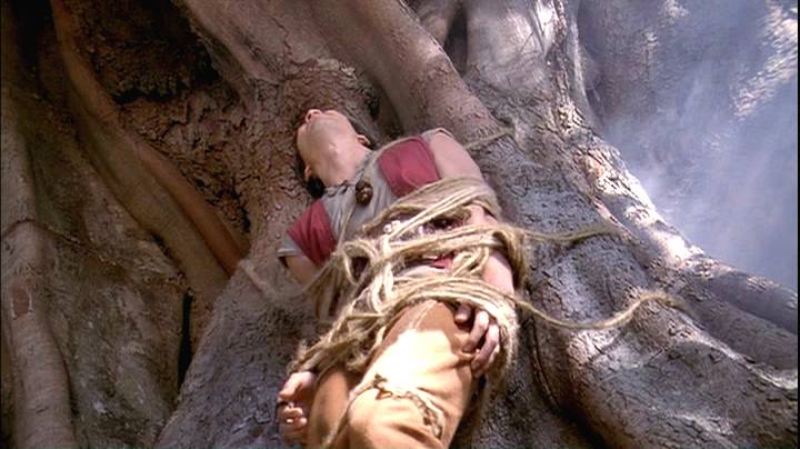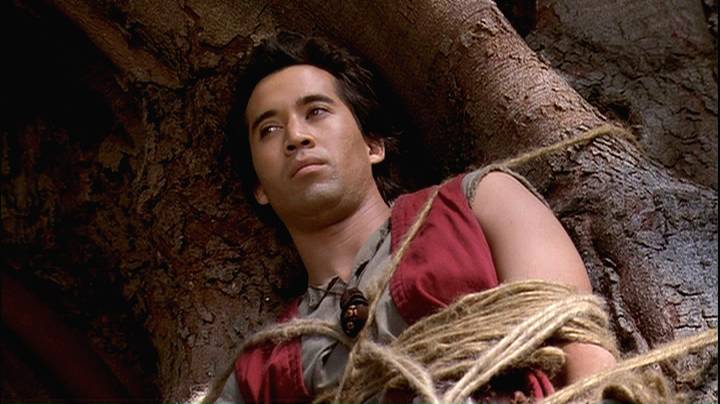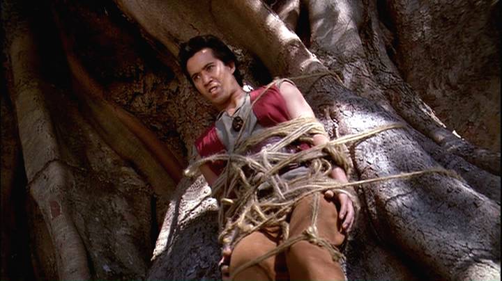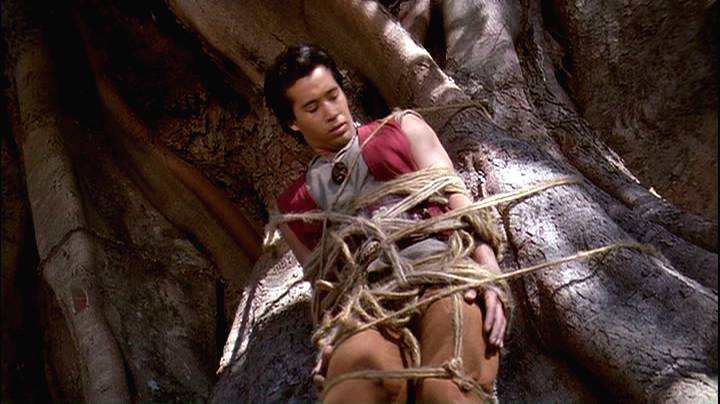 Tao is tied up and hung from a tree as bait to lure Dar.