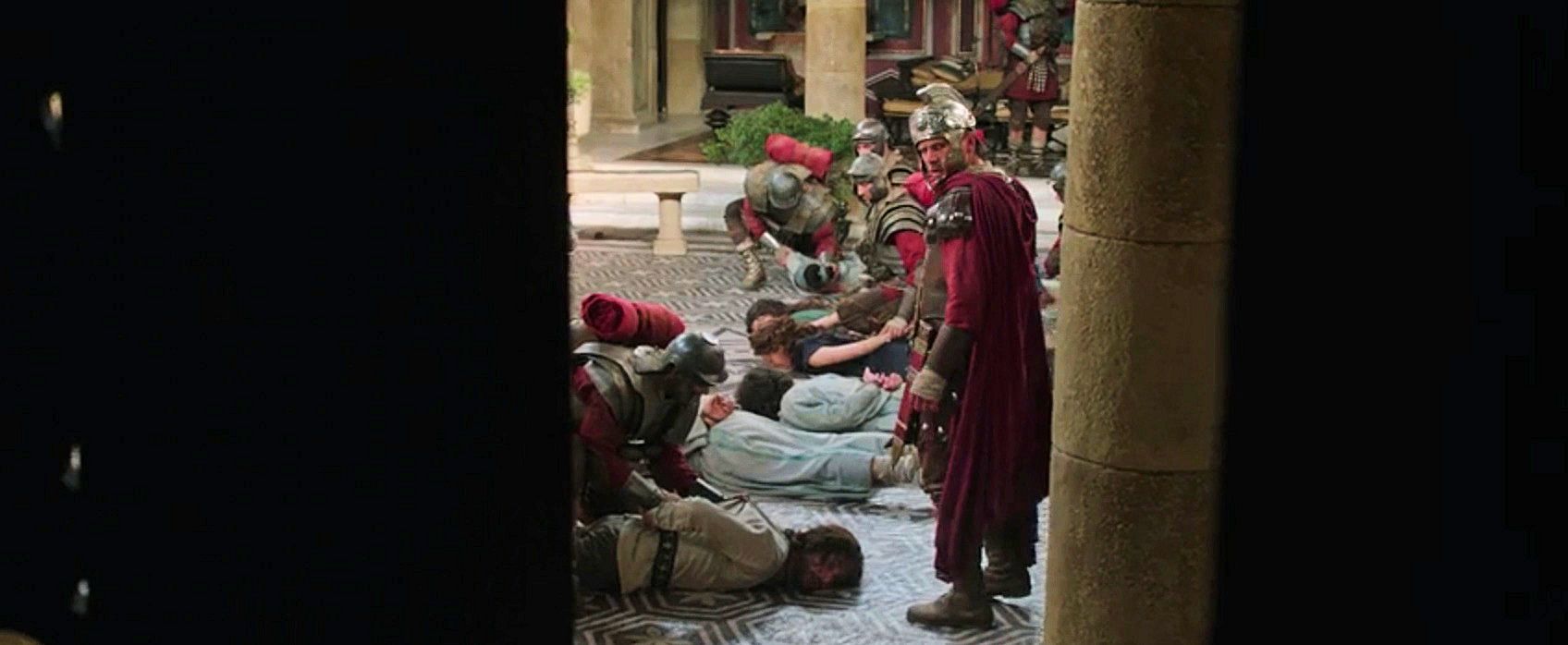 The Romans storm Judah Ben-Hur's household and arrest him.