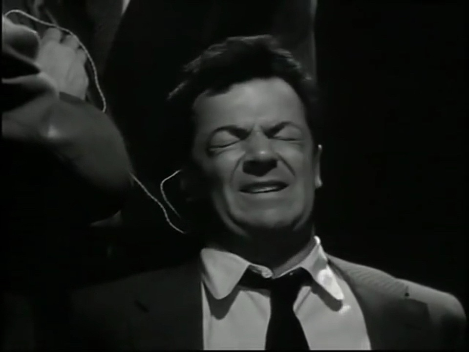 In this film noir (and it's extremely noir, as you can see), Cornel Wilde is worked over by gangsters.