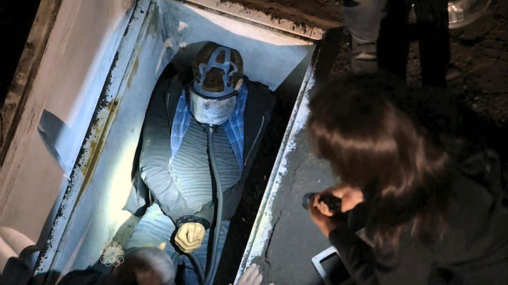 An NSA agent is buried in a refrigerator with a limited supply of oxygen.