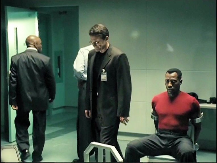 Blade is captured by police who unknowingly plan to turn him over to vampires. Later, King is chained and tortured for information about Daystar.