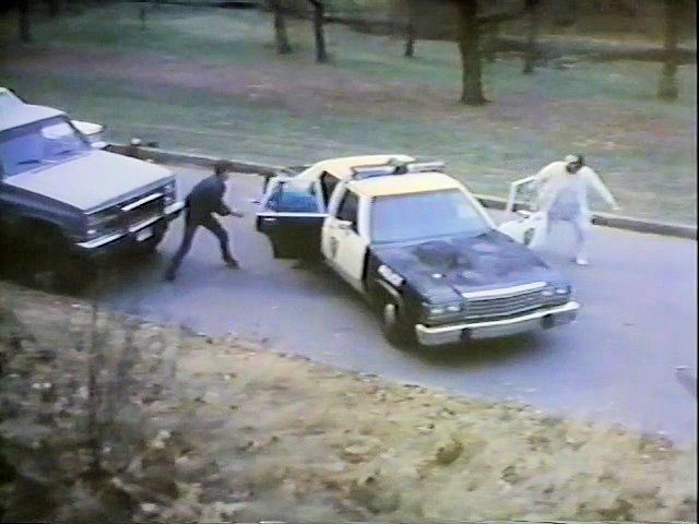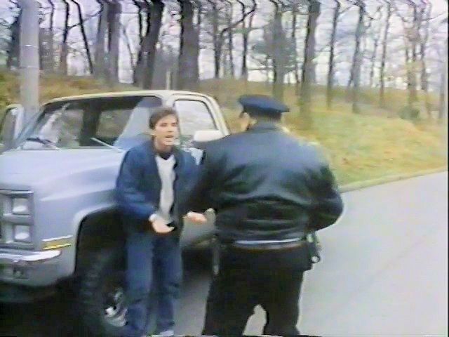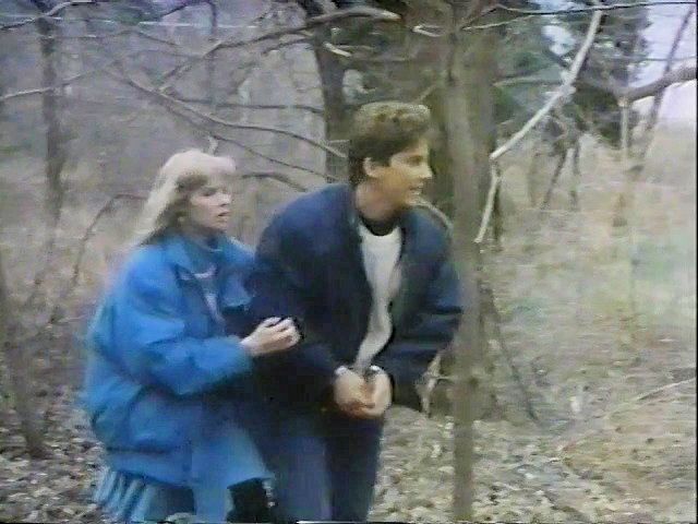 A student is handcuffed by the police while trying to explain there's a maniac nearby, then goes to the school's metal shop to cut the handcuffs.