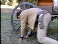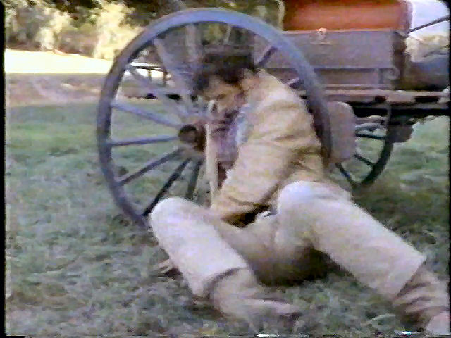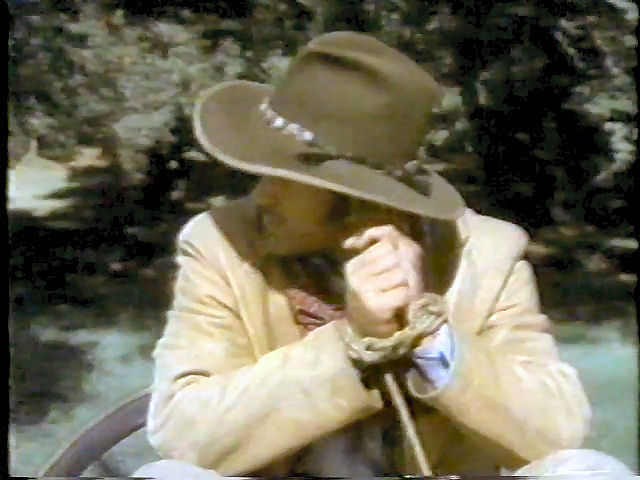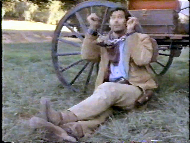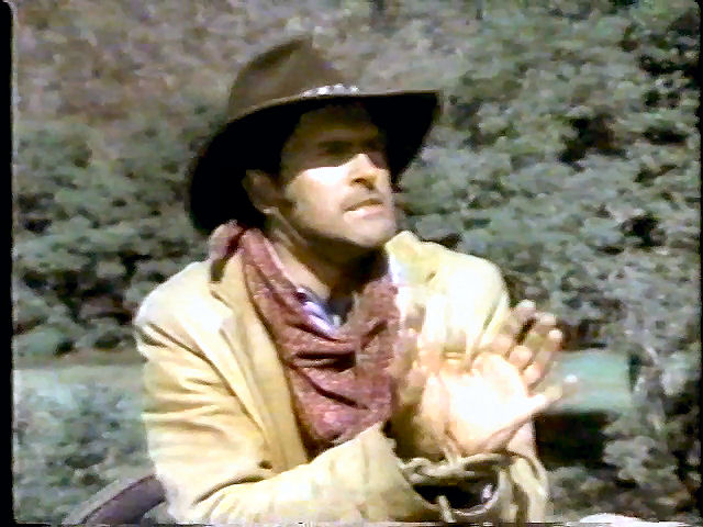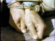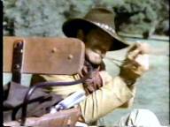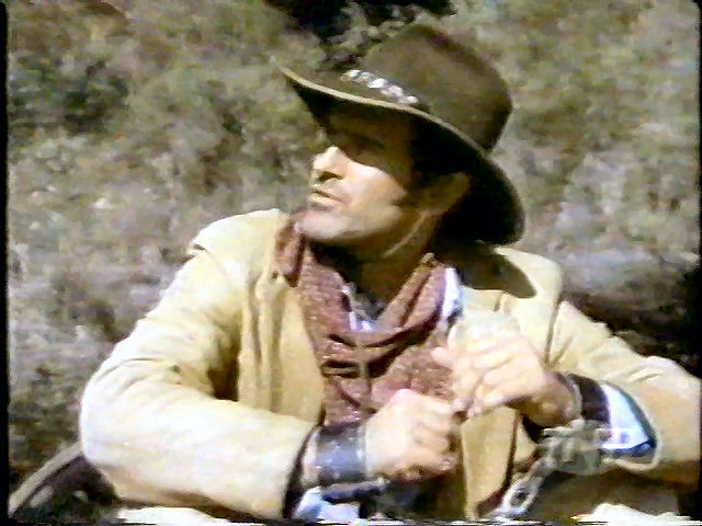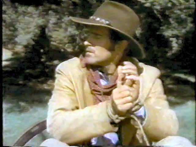 the rope he's been tied with, he gestures to Comet, his horse, not to try to rescue him. When he finally cuts through the rope,