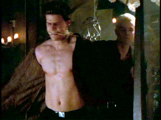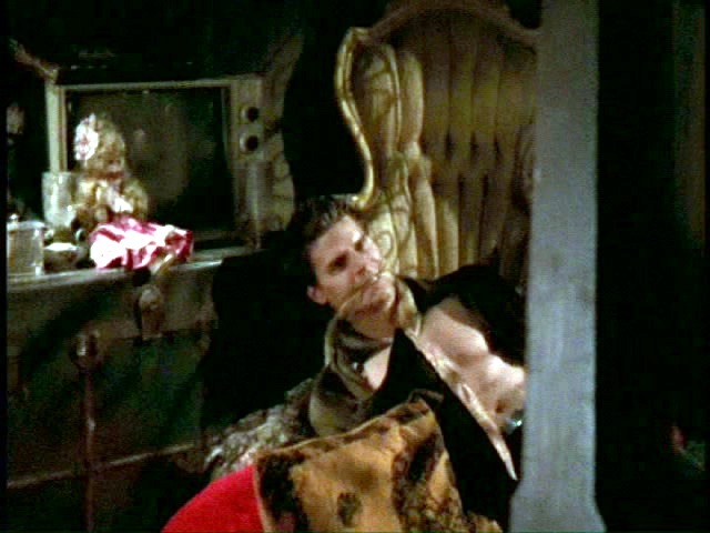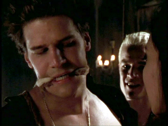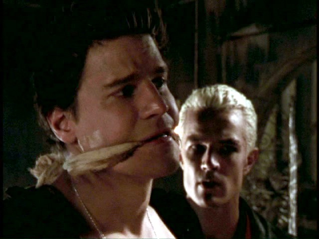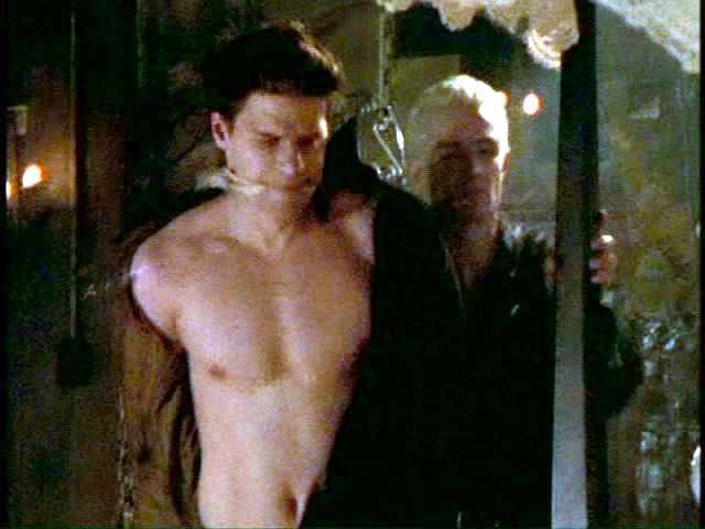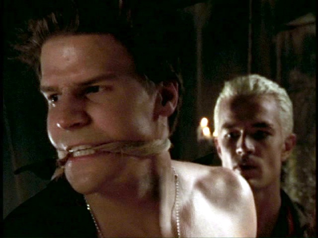 Angel is captured by Spike, who keeps him tied up while planning to sacrifice him.