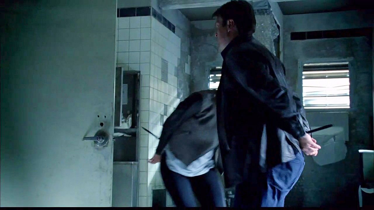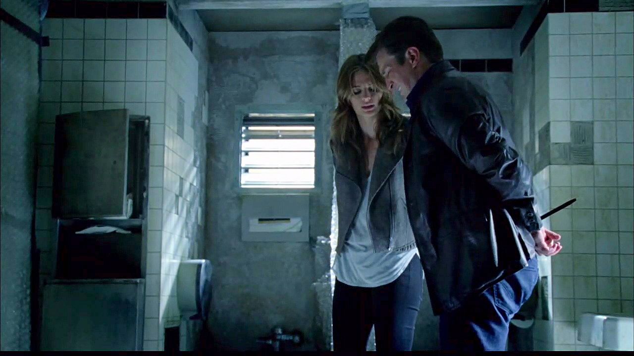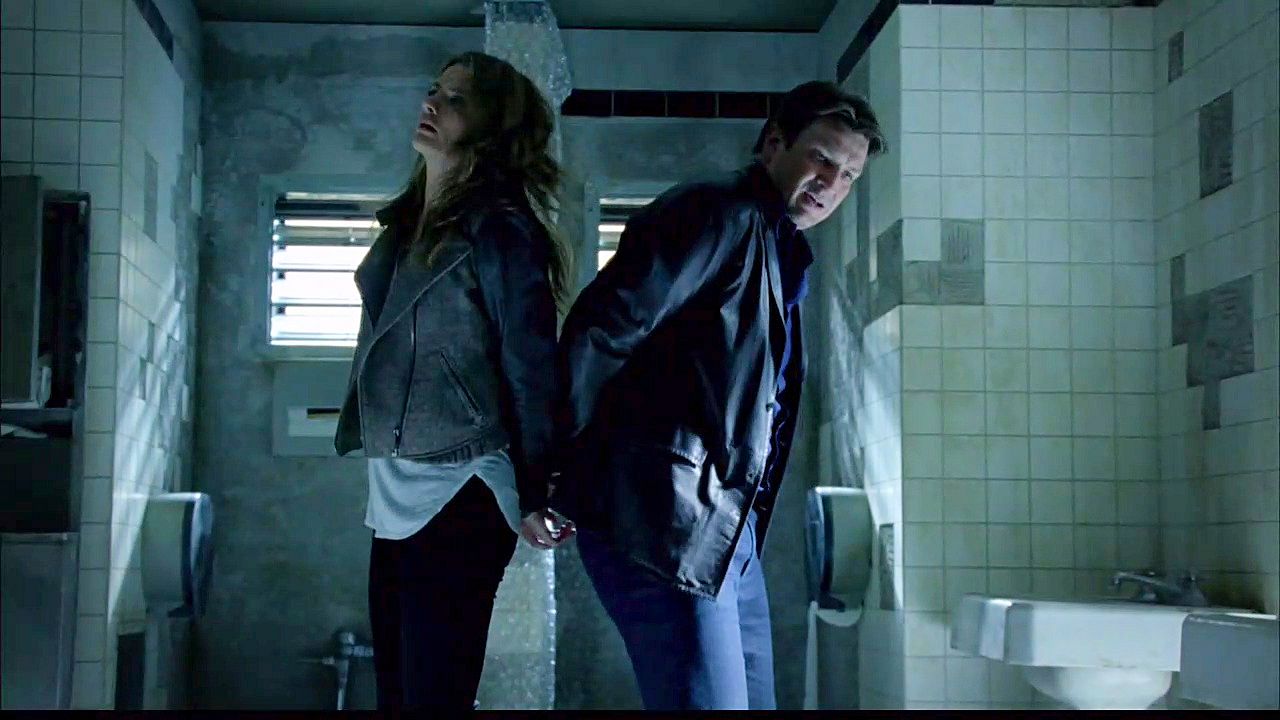 Castle and Beckett are captured and handcuffed while searching for a file hidden in an abandoned building.