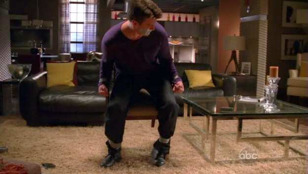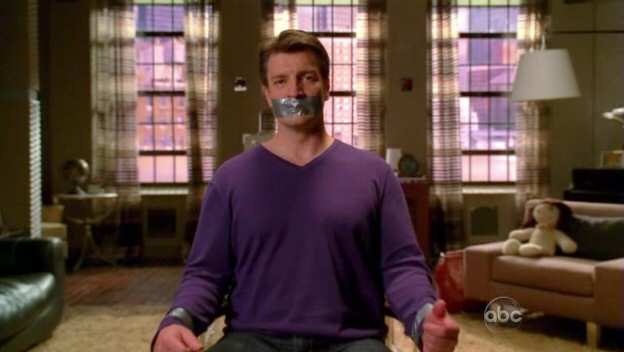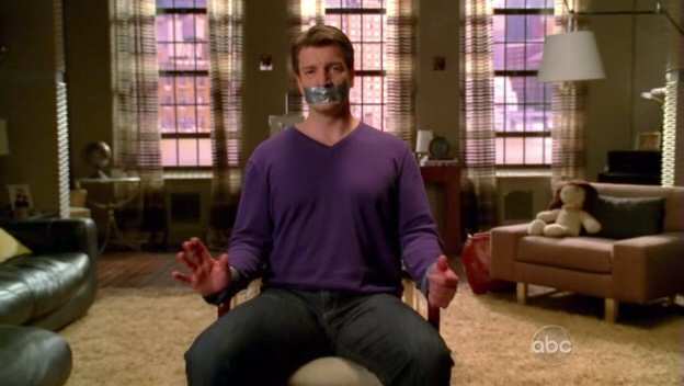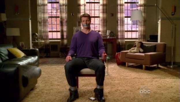 As a research exercise for a novel, Castle has his daughter tie him to a chair. Since he's in no position to object, she grabs some spending money.