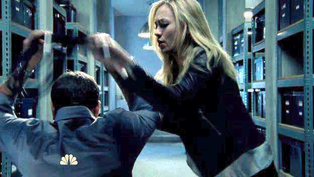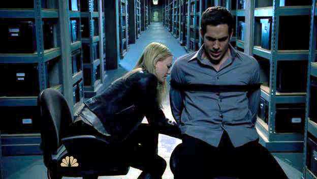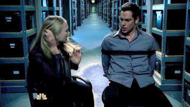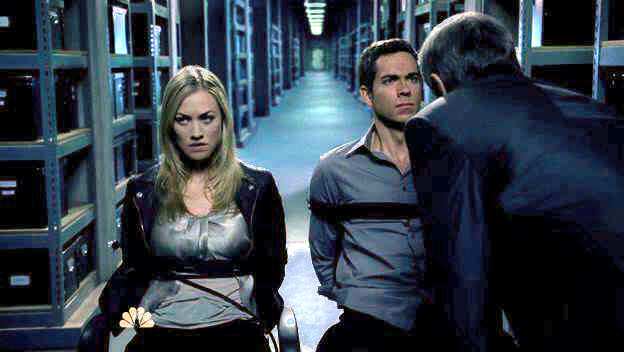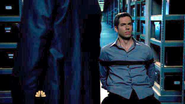 Chuck and Sarah are tied up by Volkoff and Chuck's mom, who slips Sarah a razor so that they can escape.