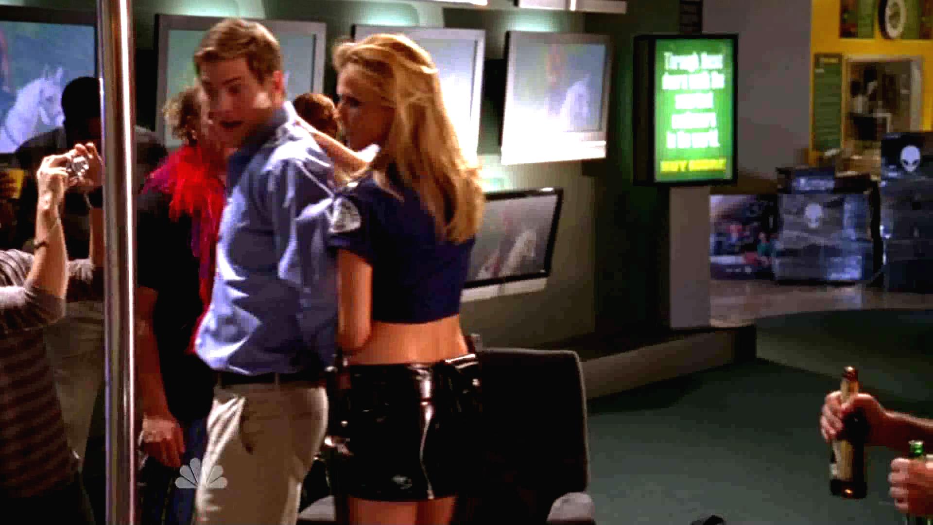 The Buy More crew kidnaps Chuck as practice for Captain Awesome's bachelor party. Later, they bring Awesome to the party, where a naughty policewoman handcuffs him.