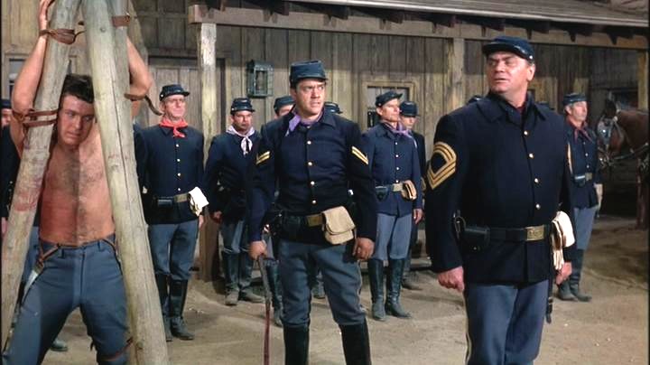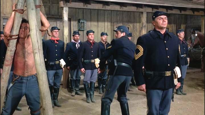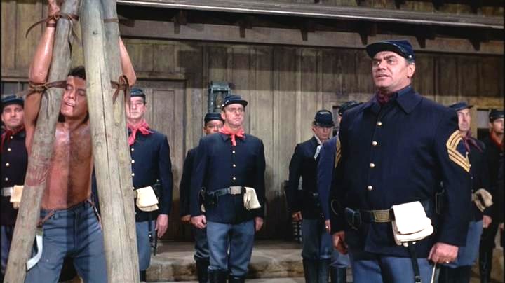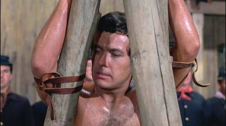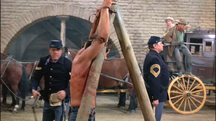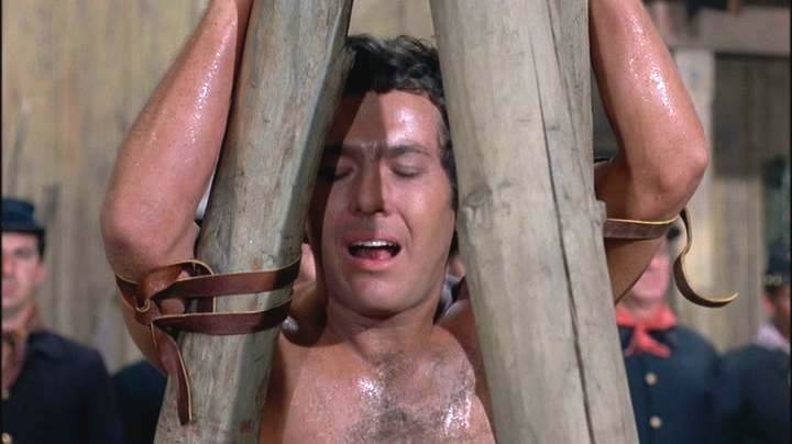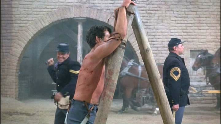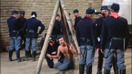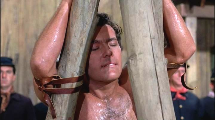 Michael Cole plays an Army deserter who's tied to a post and whipped.