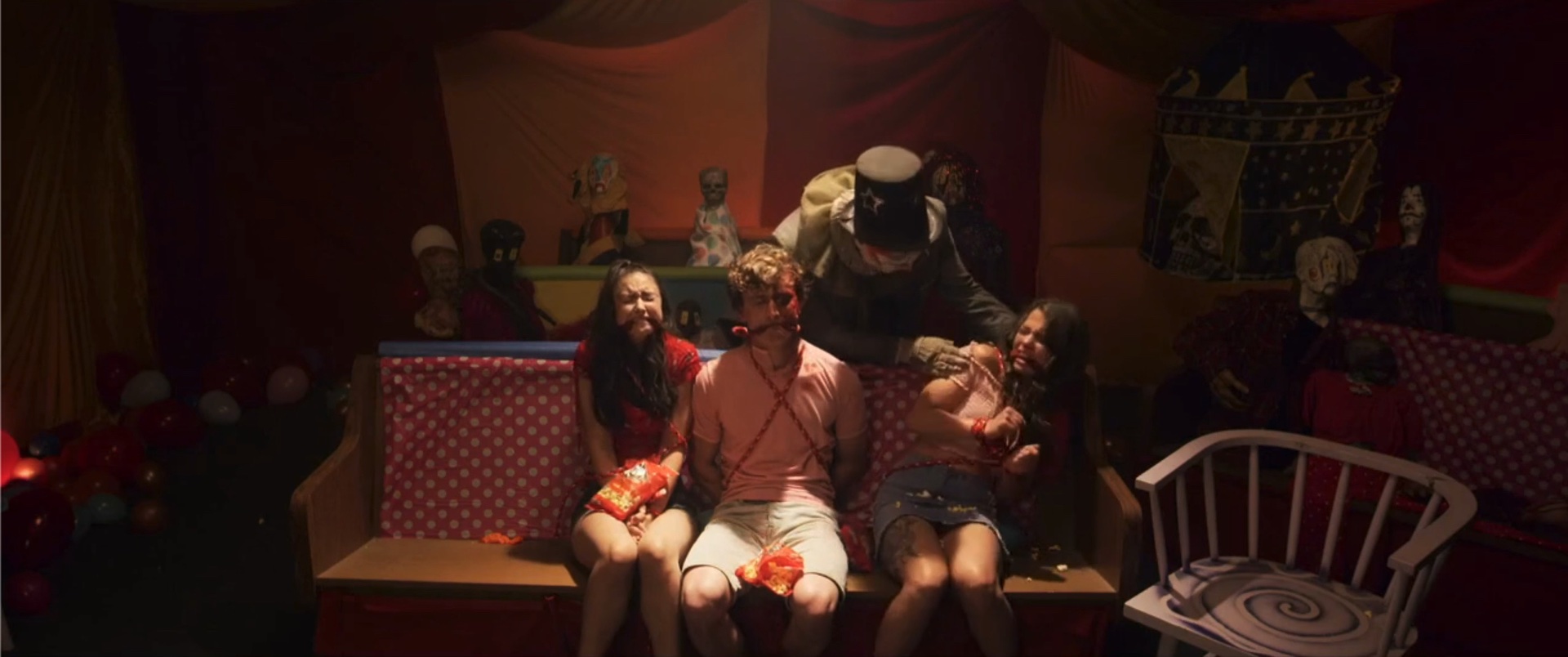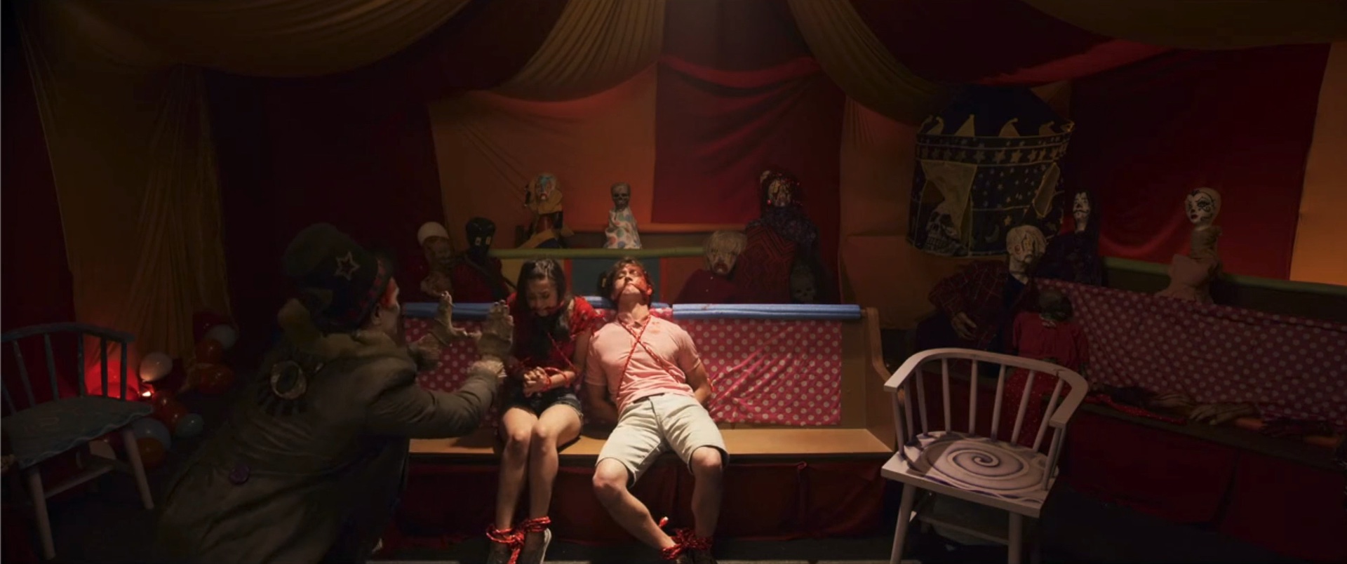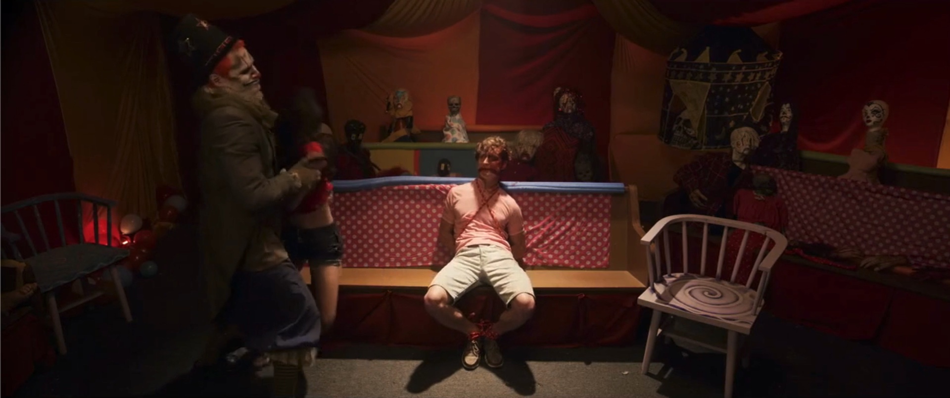 Teens find themselves trapped in a funhouse, stalked by a killer clown.
