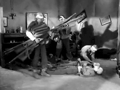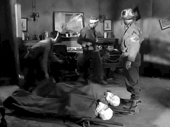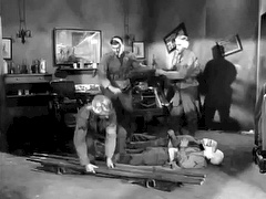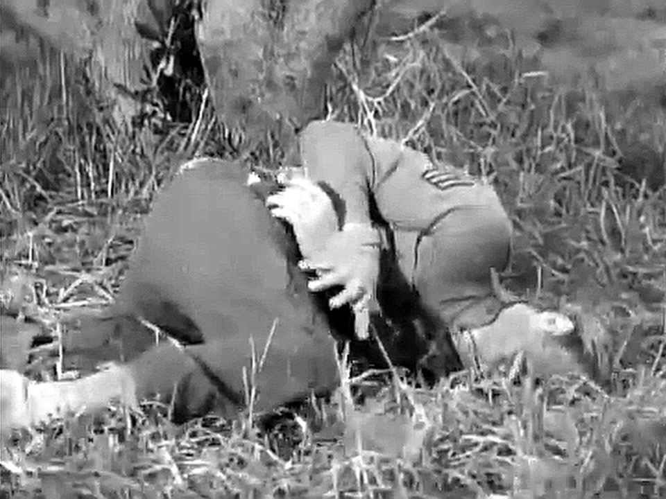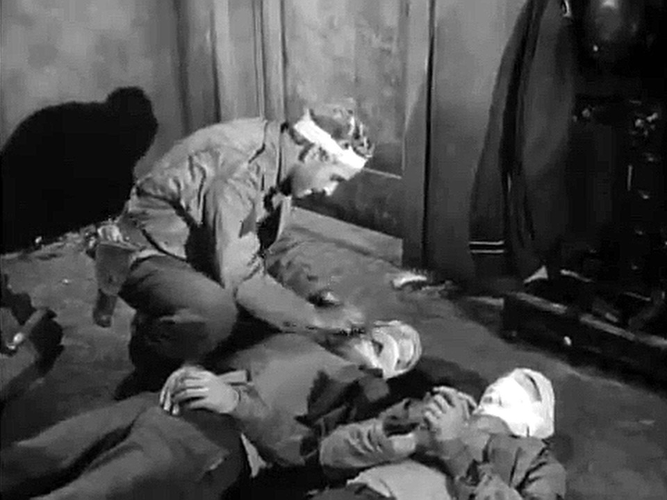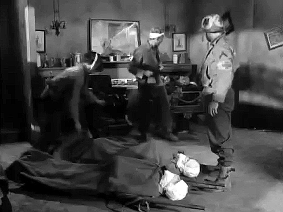 When Doc, Saunders and Caje are captured by Germans in an American-held town, Saunders and Caje are tied, gagged and disguised as