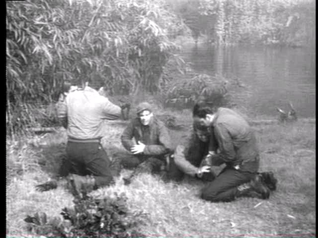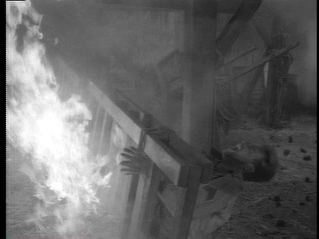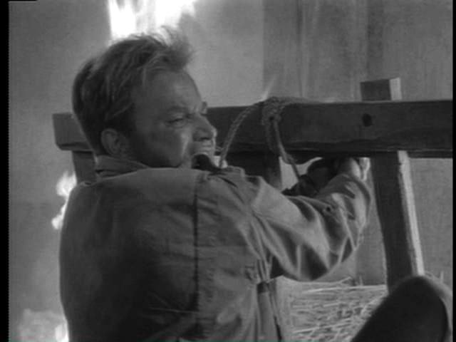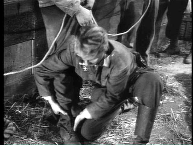 In this episode directed by Robert Altman, the squad is captured. When the barn they're tied up in catches fire, Saunders is left behind to escape on his own.