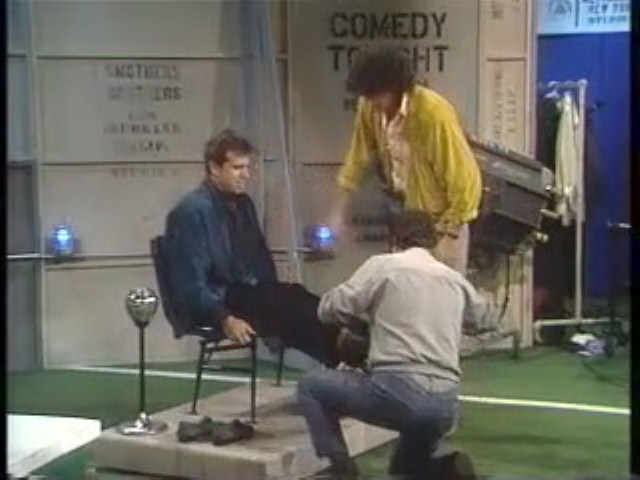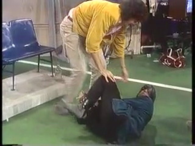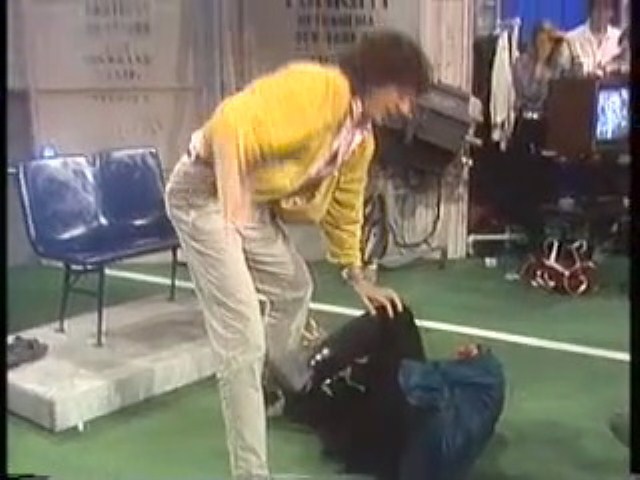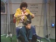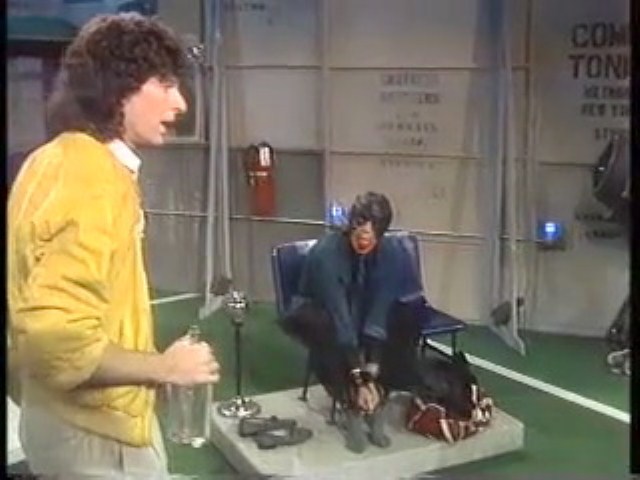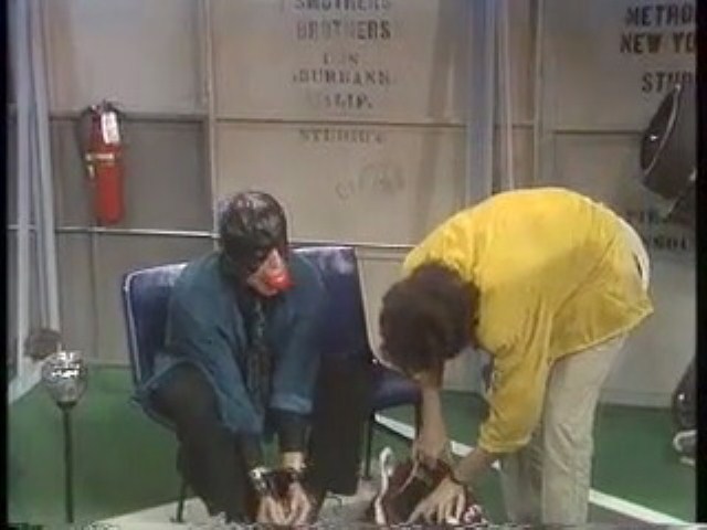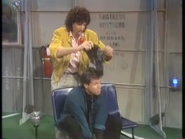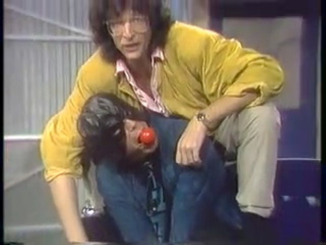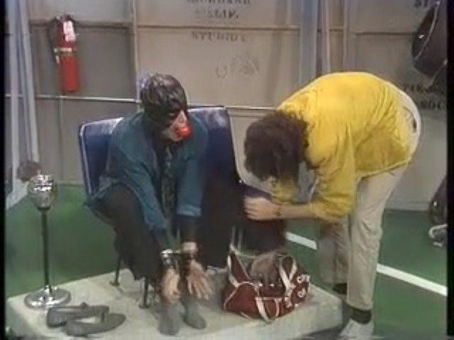 Howard Stern places genial host Bill Boggs in handcuffs and S&M gear, and proceeds to take over the show.