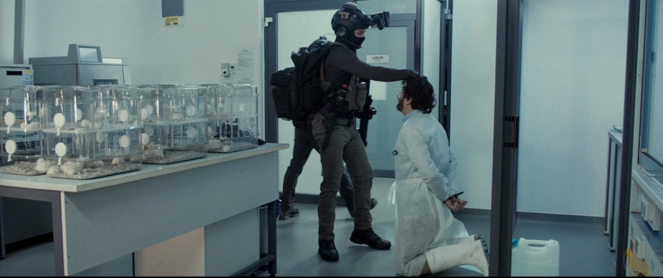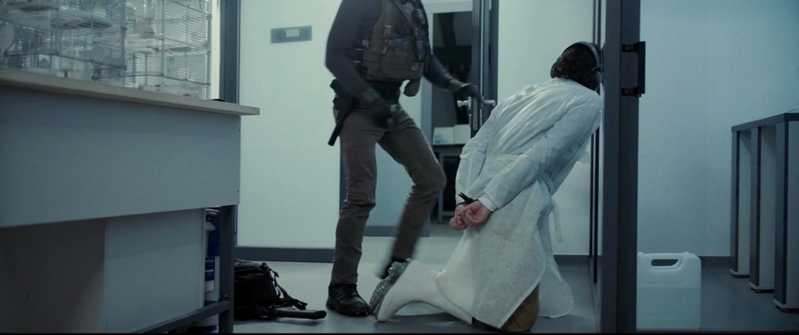 A former Green Beret joins a private military outfit, raids a Middle Eastern laboratory and is restrained after having a bacterial infection.