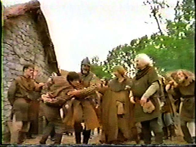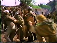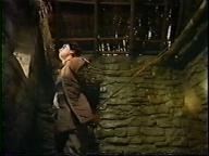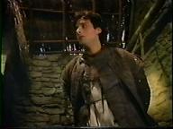 Cedric is mistaken for a thief who has robbed him and stolen his clothes. He's placed in a cell with a rope attached to the ceiling, connecting his tied hands and his neck.
