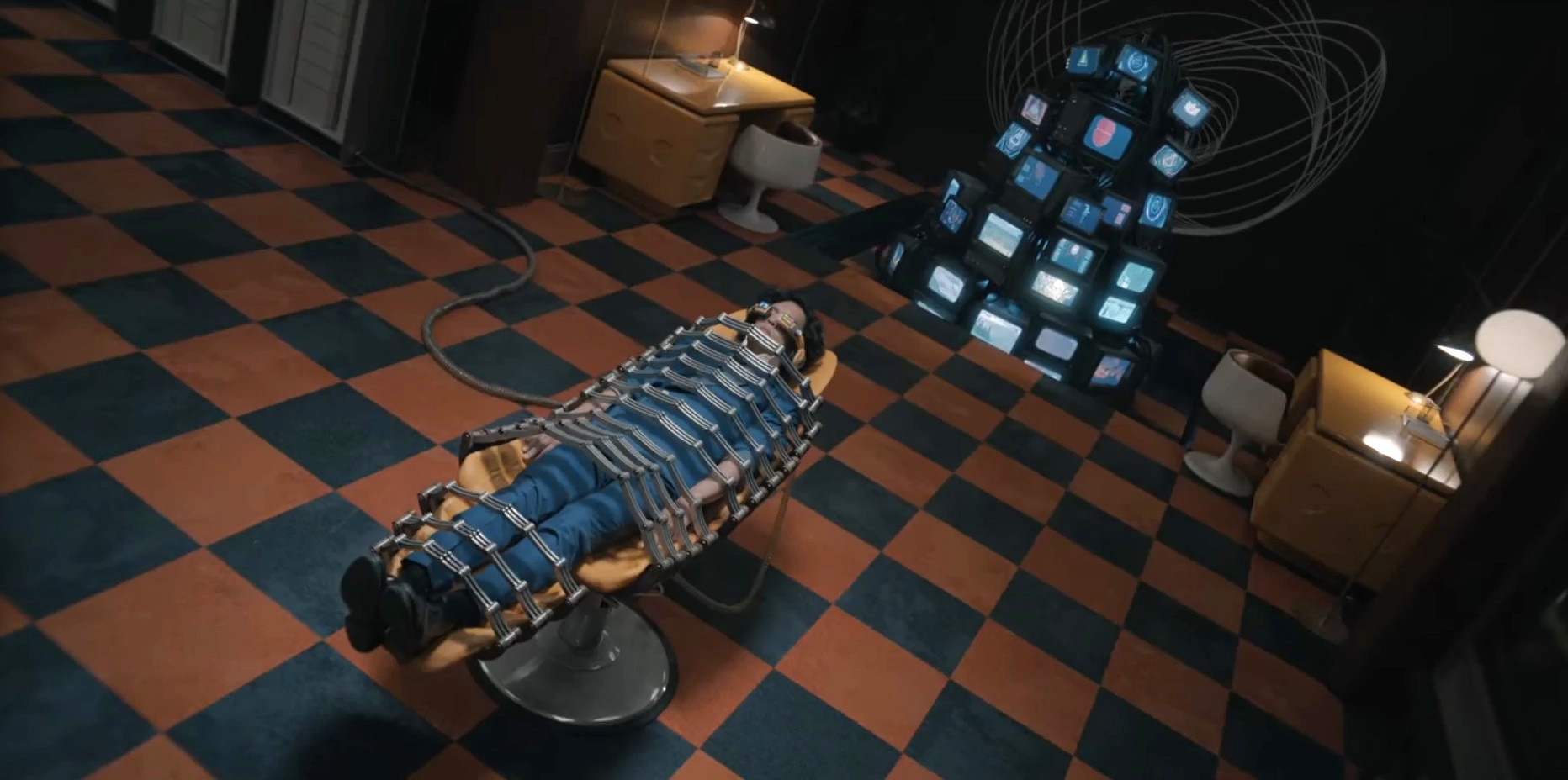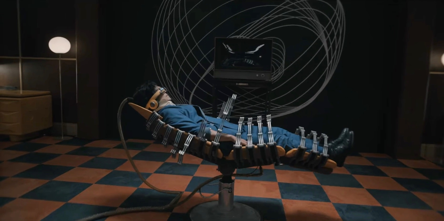 Spike is subjected to an elaborate piece of technology that digs right into his brain.