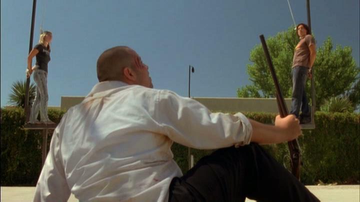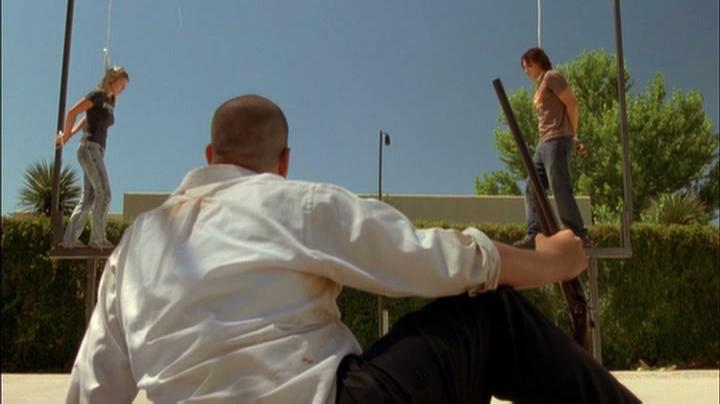 Edward Furlong plays a lunatic who lures young people to participate in a fake reality TV show. Keegan is forced to walk across a high wooden plank with his hands tied behind his back and a noose around his neck.