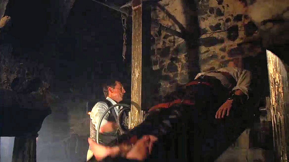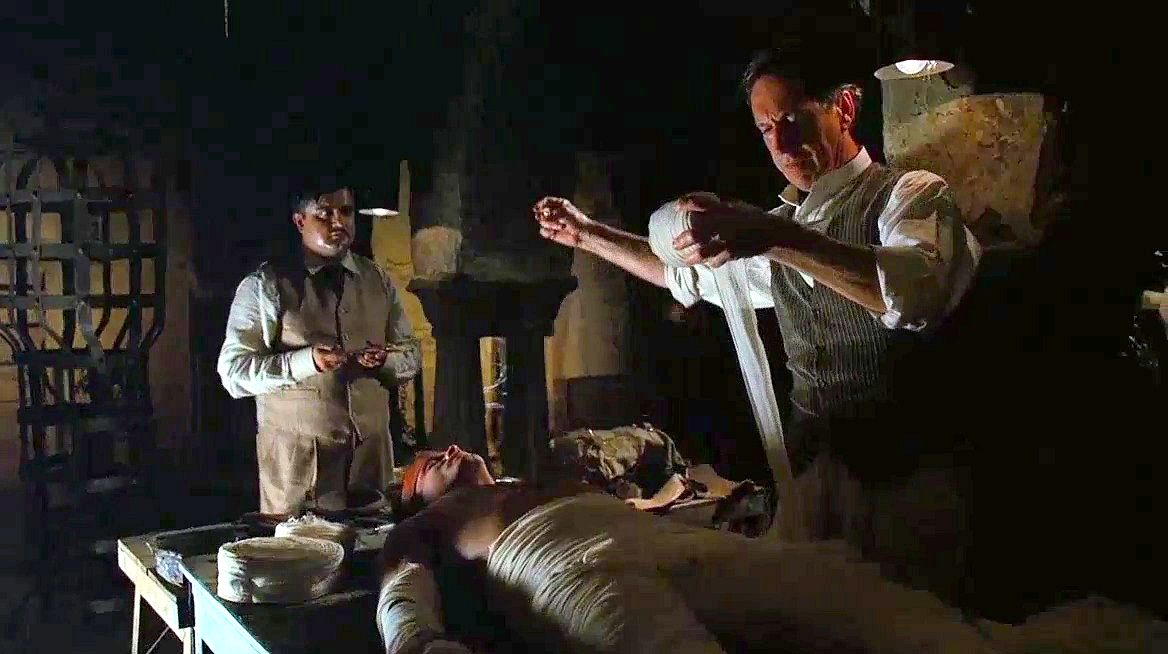 A fedora-topped archaeologist searching for an ancient tablet is captured and tortured by a member of an evil secret society.