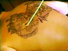 A sailor has the data for a weapon tattooed on his back.