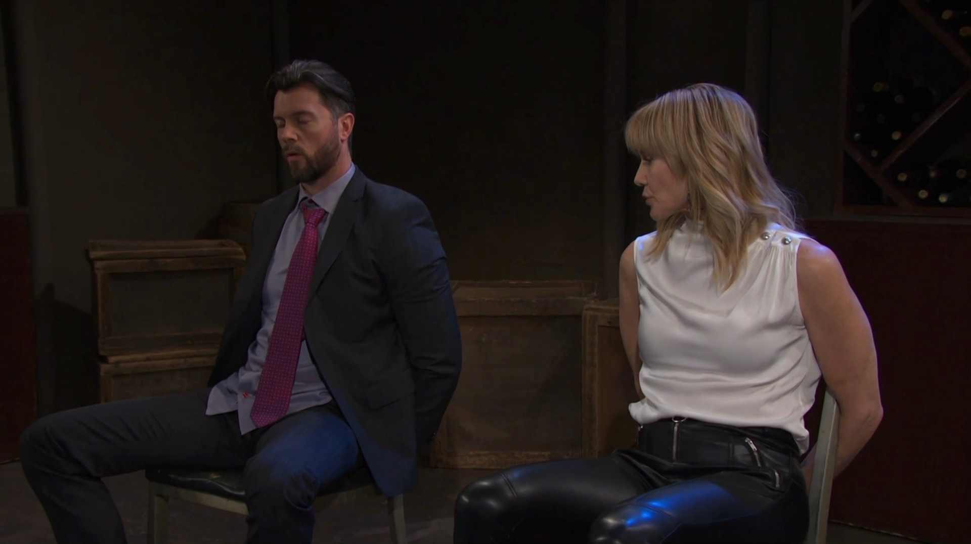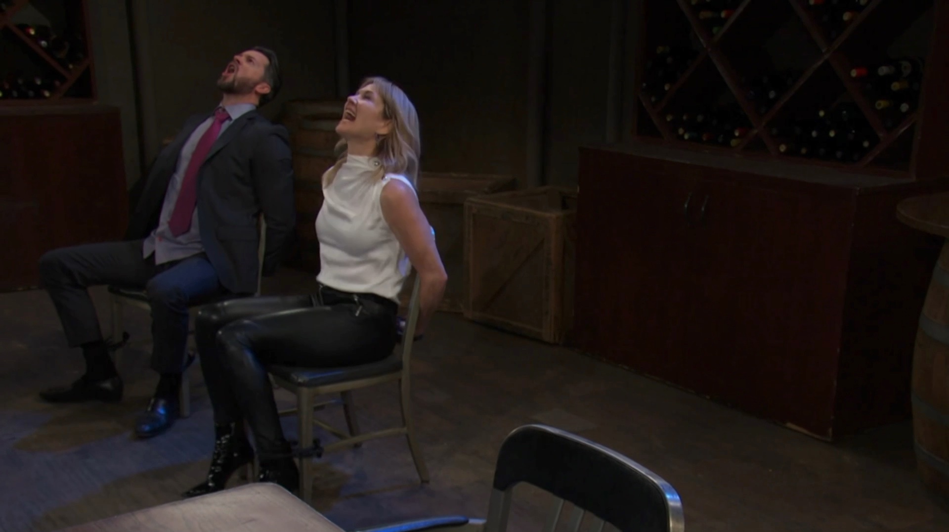 Megan brainwashes Harris and has EJ and Kristen tied up in a wine cellar. Some images are from the June 27 episode.