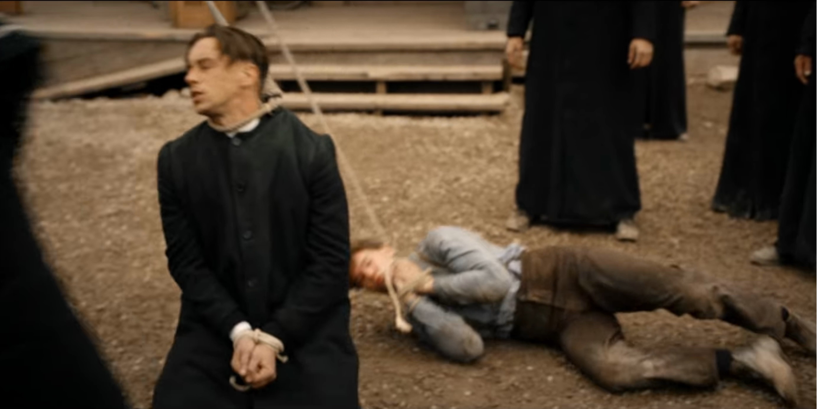 The Black Legion try to hang Seth and Sam, Jr. DL and Amelia are tied up at Stubbs’ warehouse.