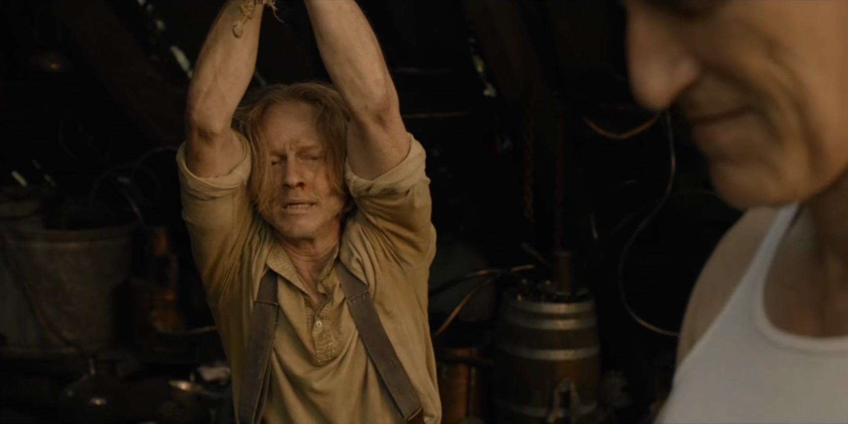 A moonshiner is beaten to get him to follow the local rules.