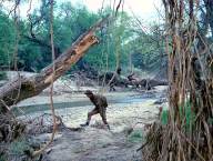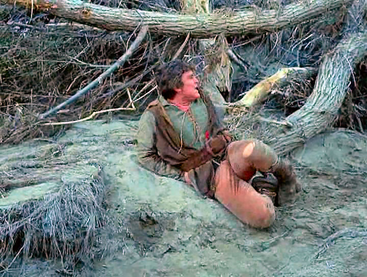 In this episode, he's accused of killing a trapper, but manages to escape and hide until Daniel can find and