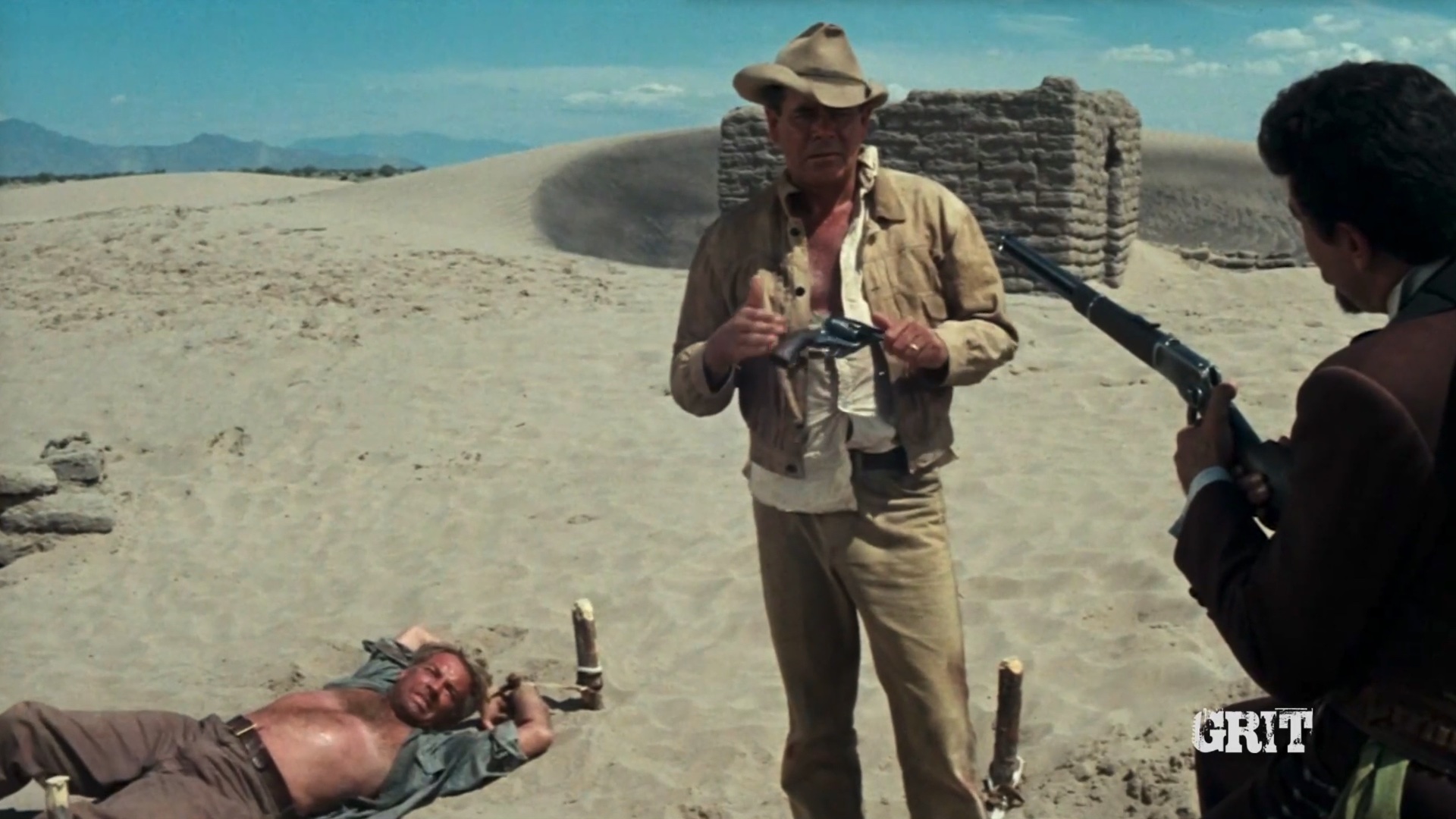 Two men searching for family members are captured by Apaches and then freed by a bandit.