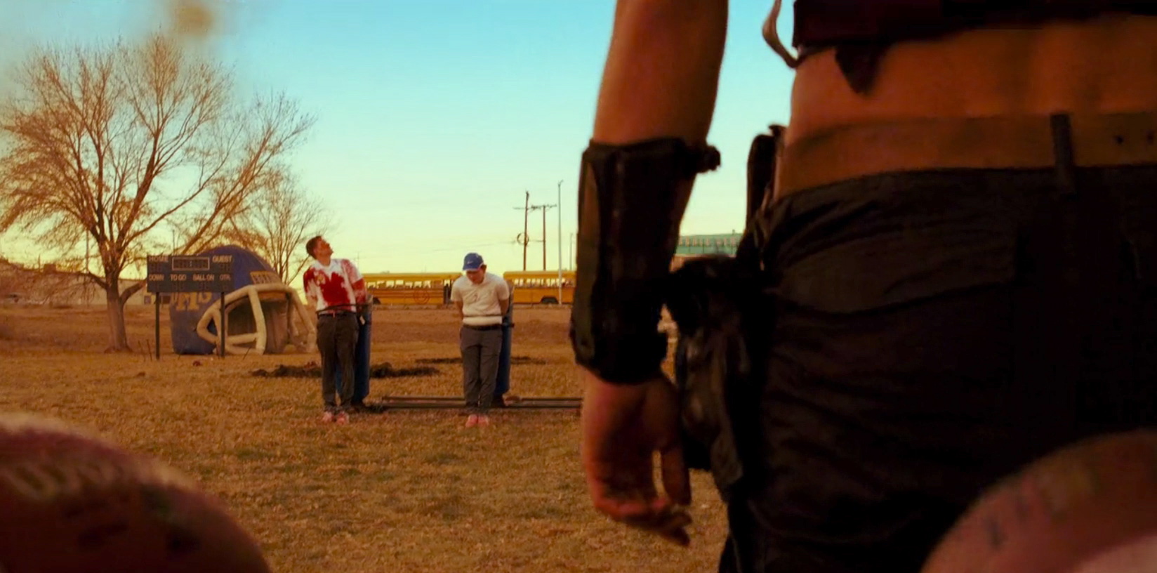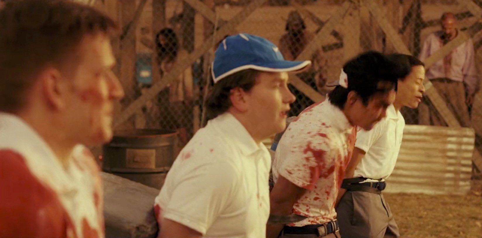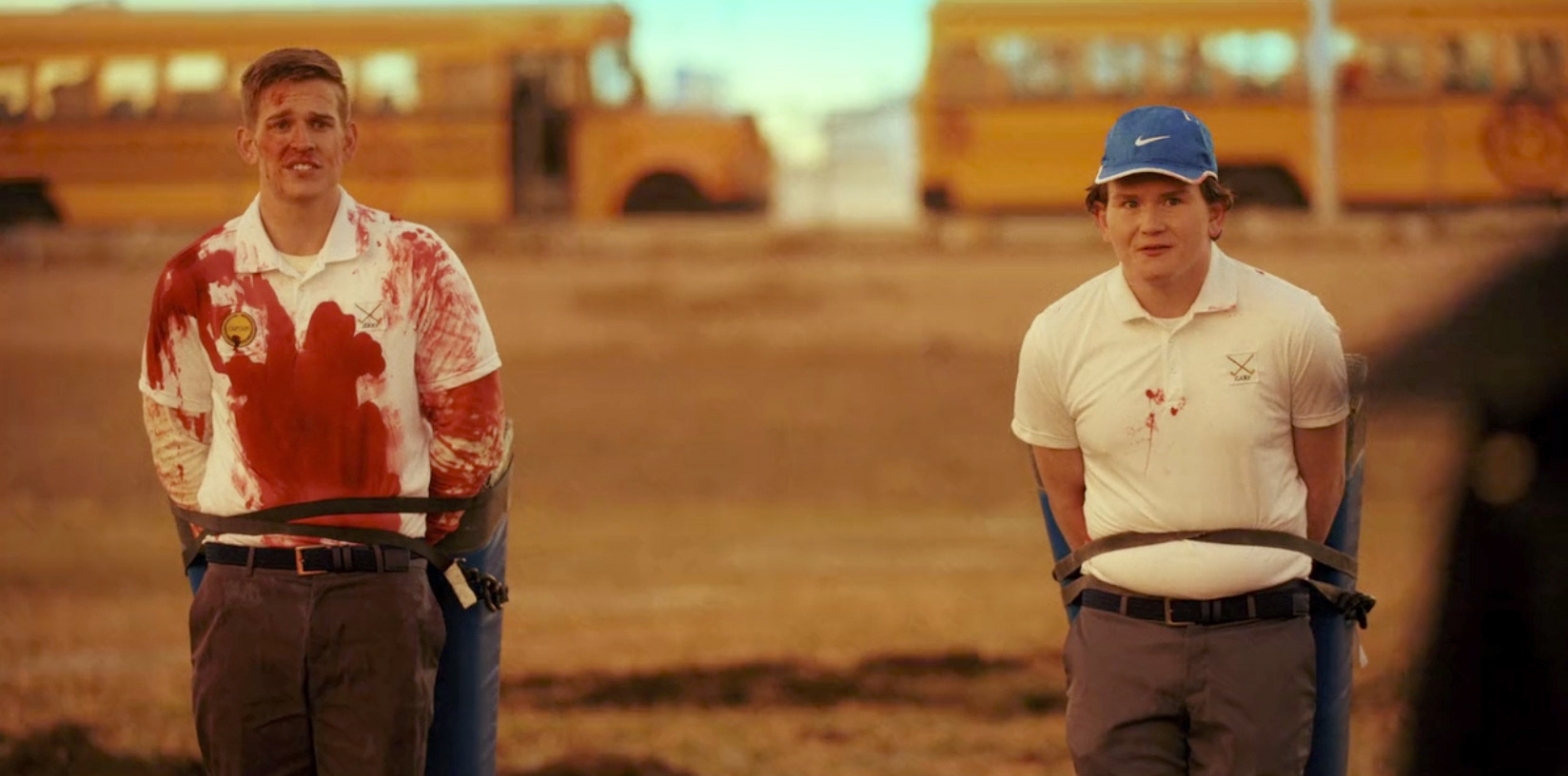 Turbo and his goons interrogate the golfers by throwing footballs at them.