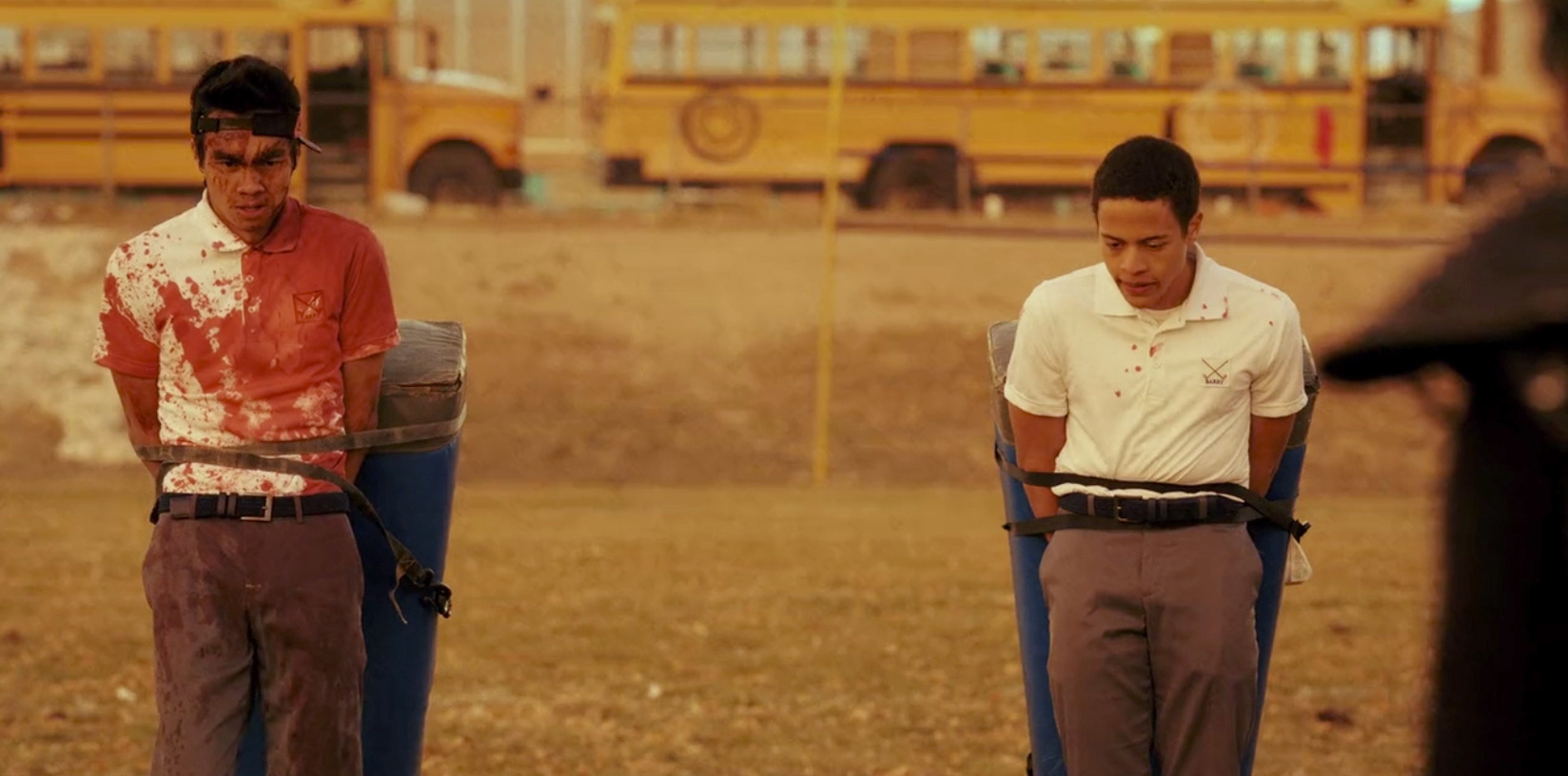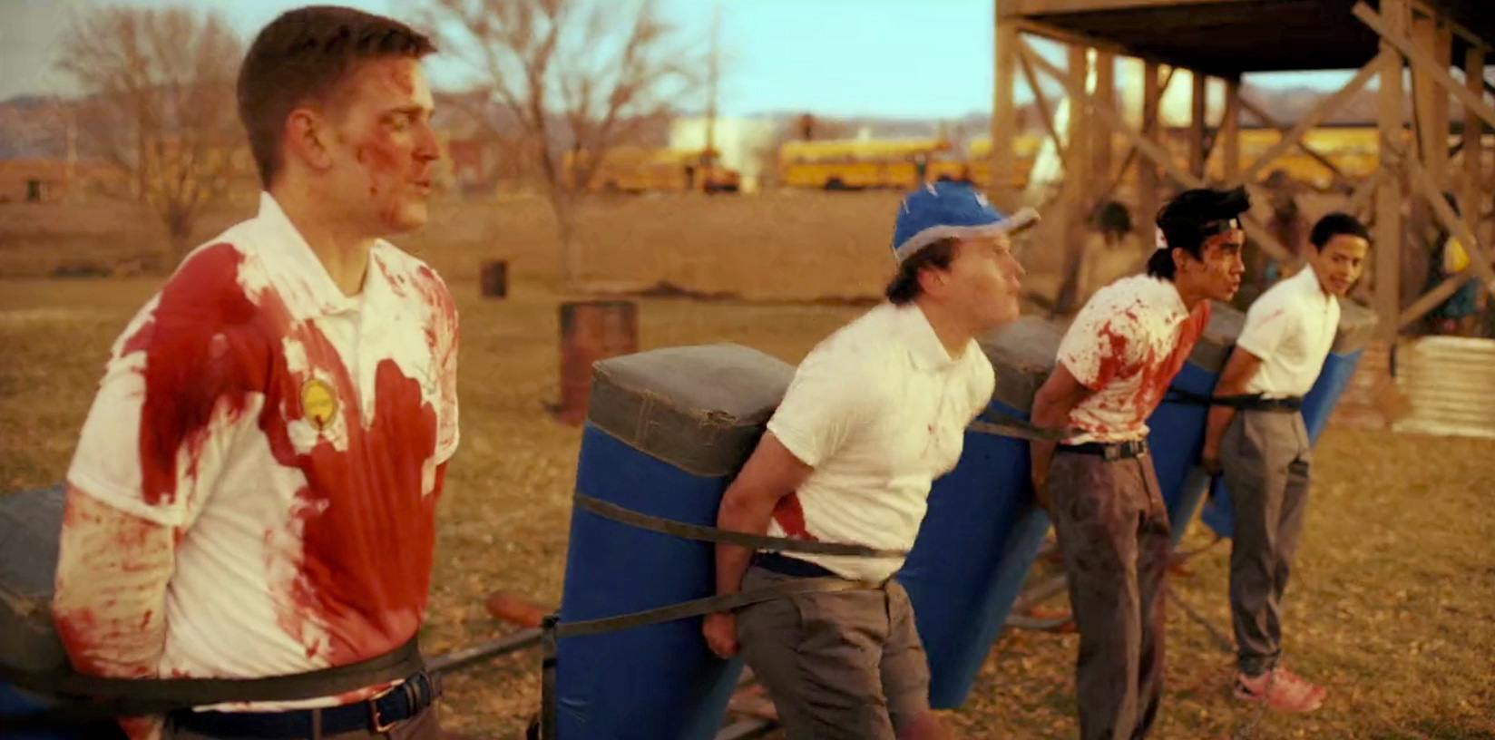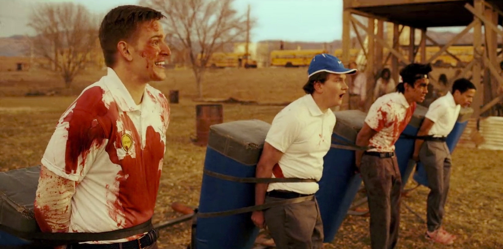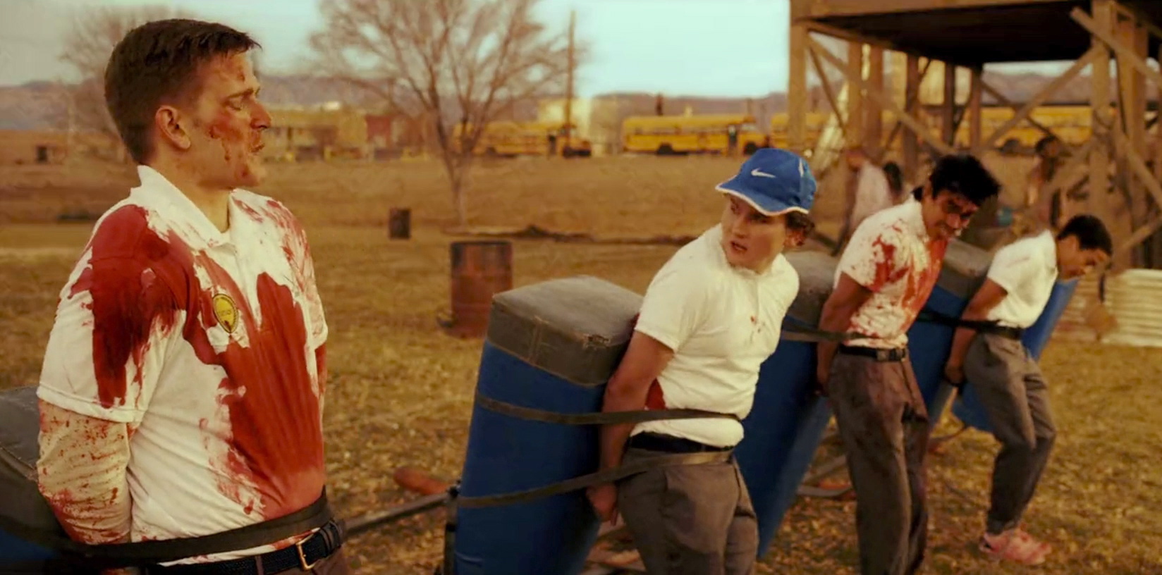 Turbo and his goons interrogate the golfers by throwing footballs at them.