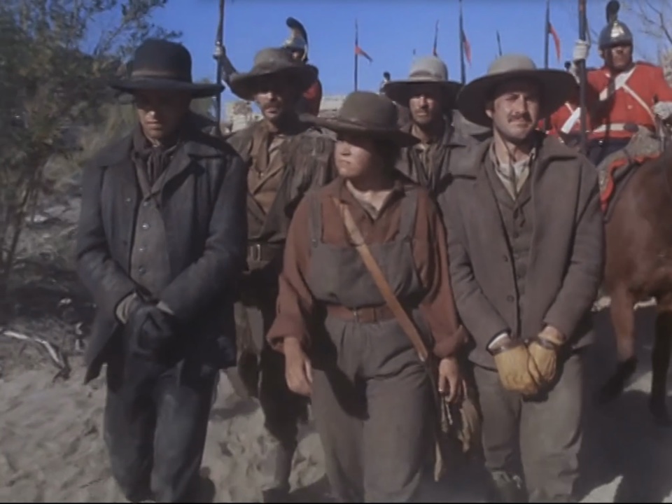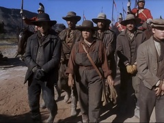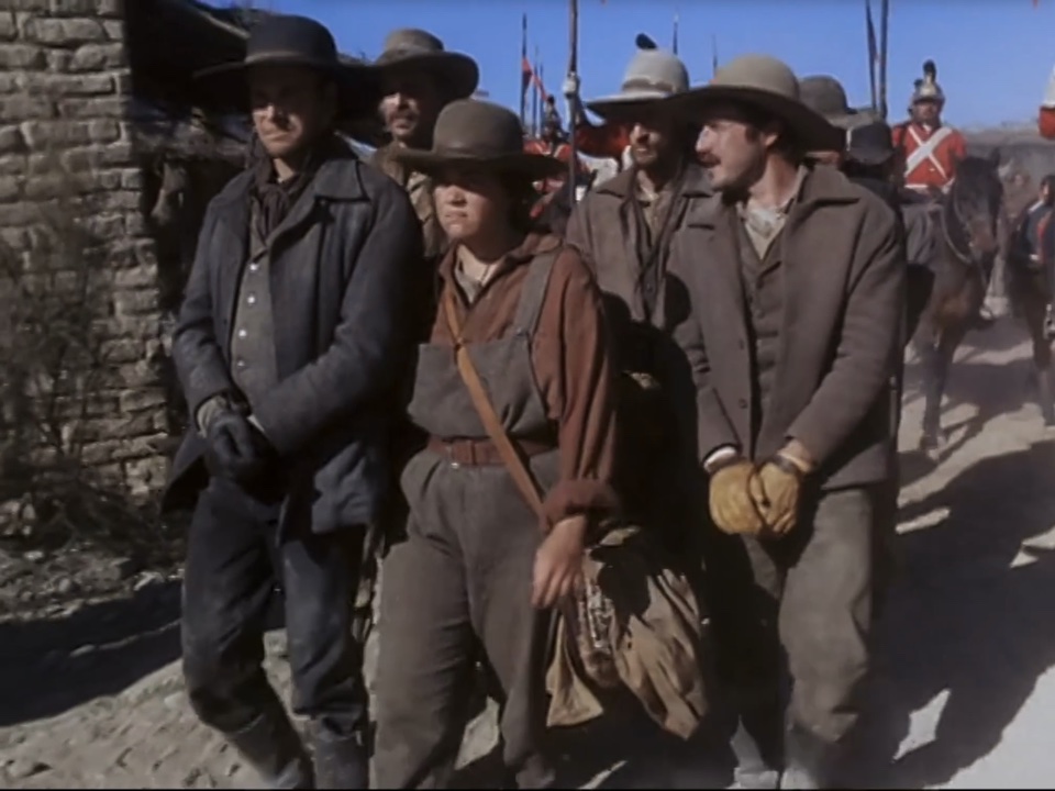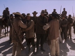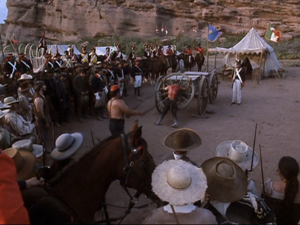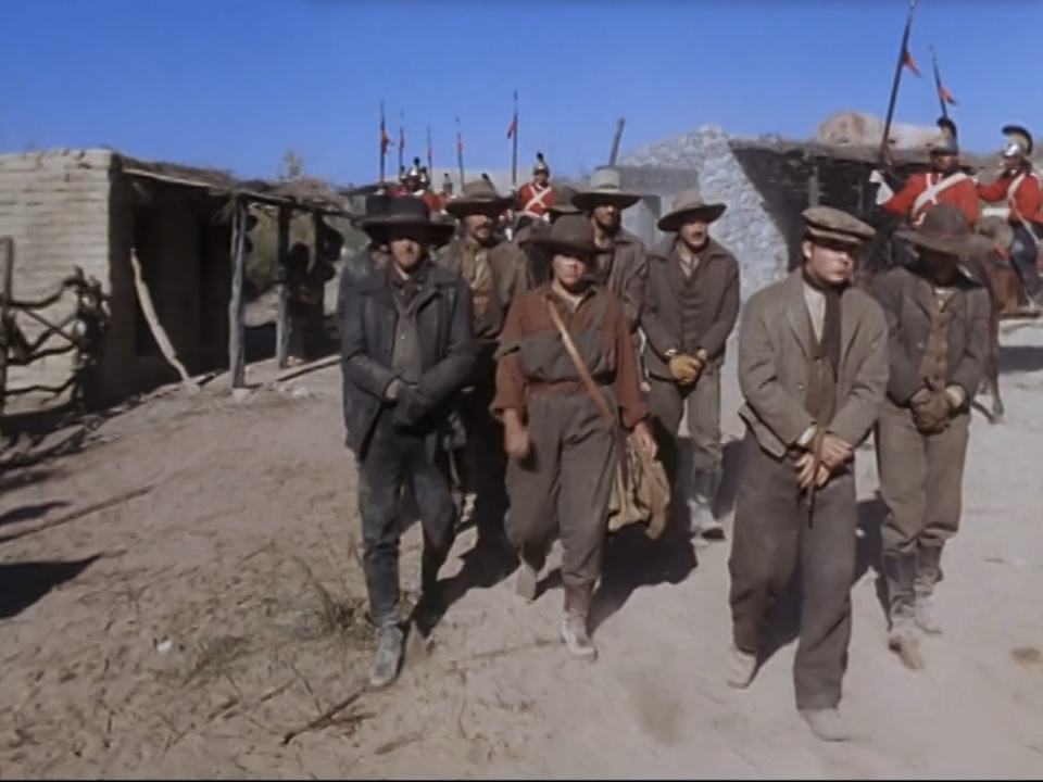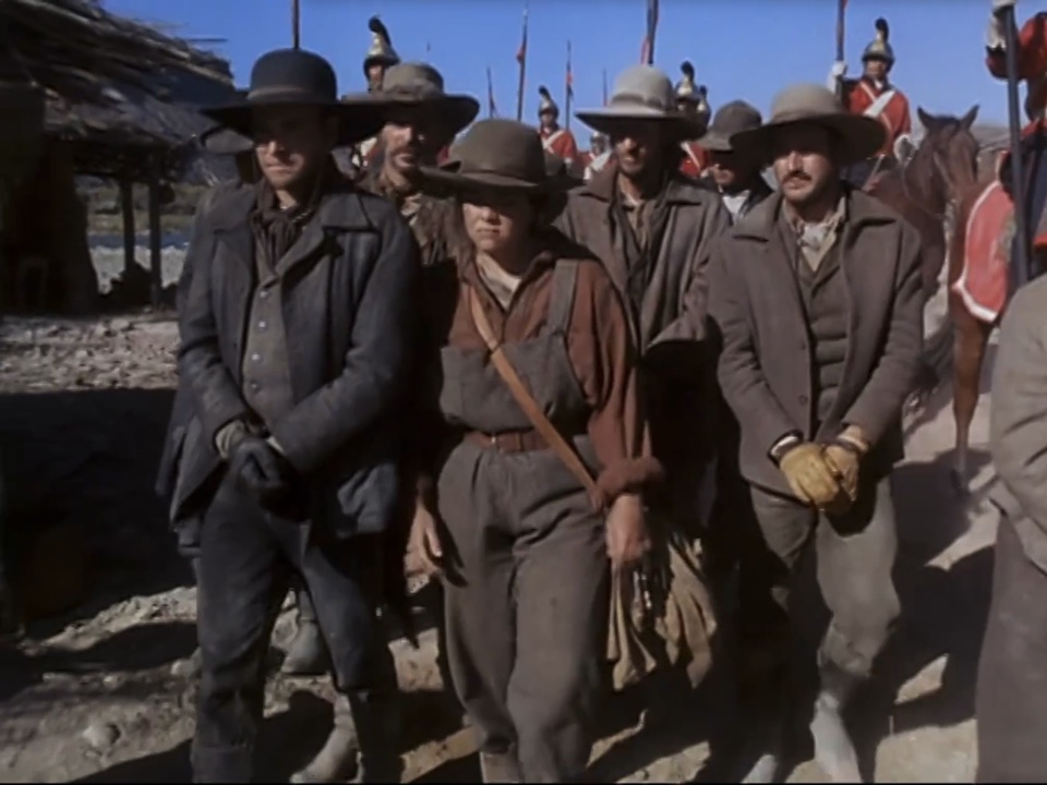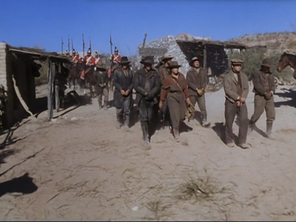 A captured Texas Ranger is punished; later, the captured Rangers are marched through the desert.